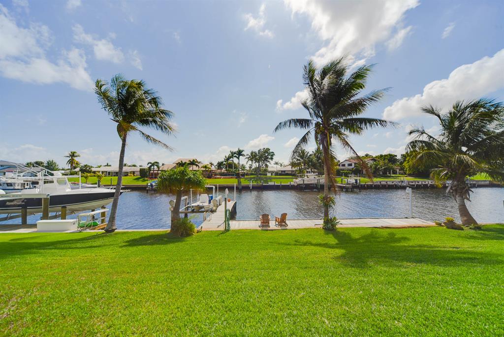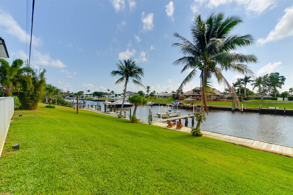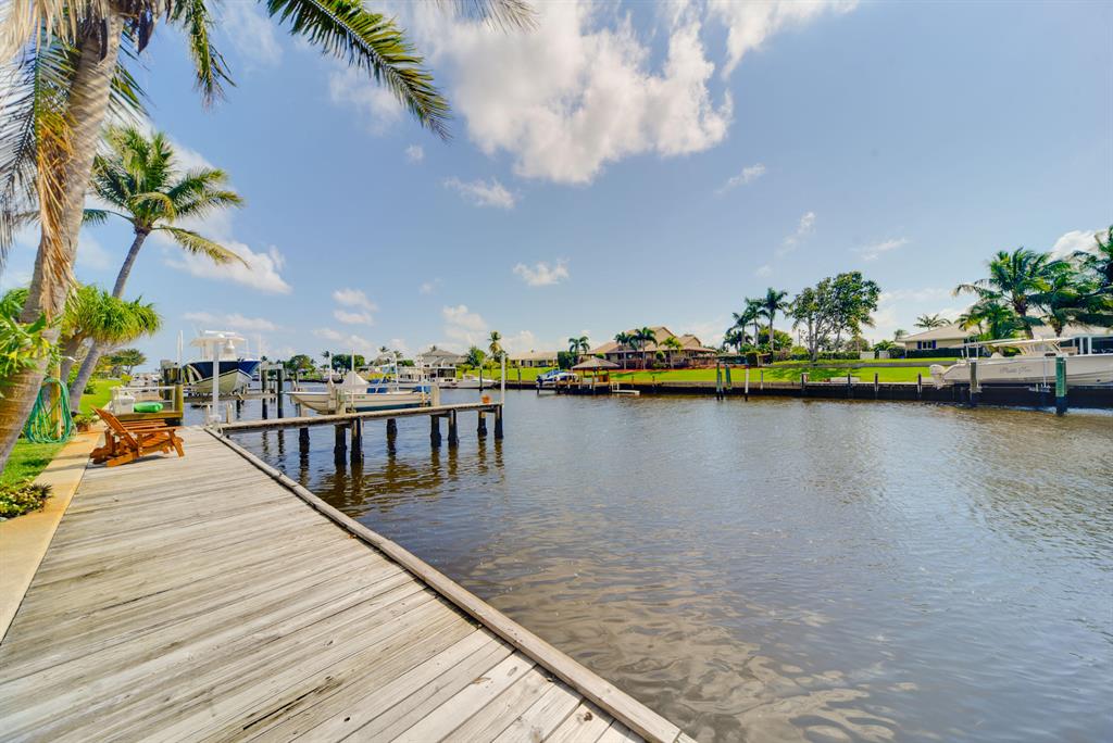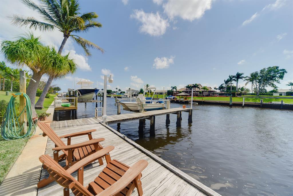 Attention boaters: opportunity to create your waterfront dream home! Ocean access, on the canal, just minutes to PB inlet. Seawall is maintained at no cost to homeowner! Dock has cement pilings & will support a 50 ft boat in water & 35 ft on lift. This is the perfect property for a buyer who wants to customize their tropical, waterfront home. The Florida room looks over the water giving you a beautiful view. This home was originally a 3/2; it's been converted to a 2/2. There is also a den/office off the master which leads to the backyard. It has a well which saves you money on watering the lawn & keeps your yard looking lush. The interior has city water. There is gas to the outdoor grill, dryer, range, water heater & tiki torches. Endless possibilities with this property. PARADISE AWAITS