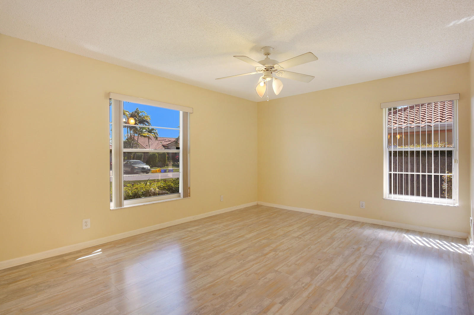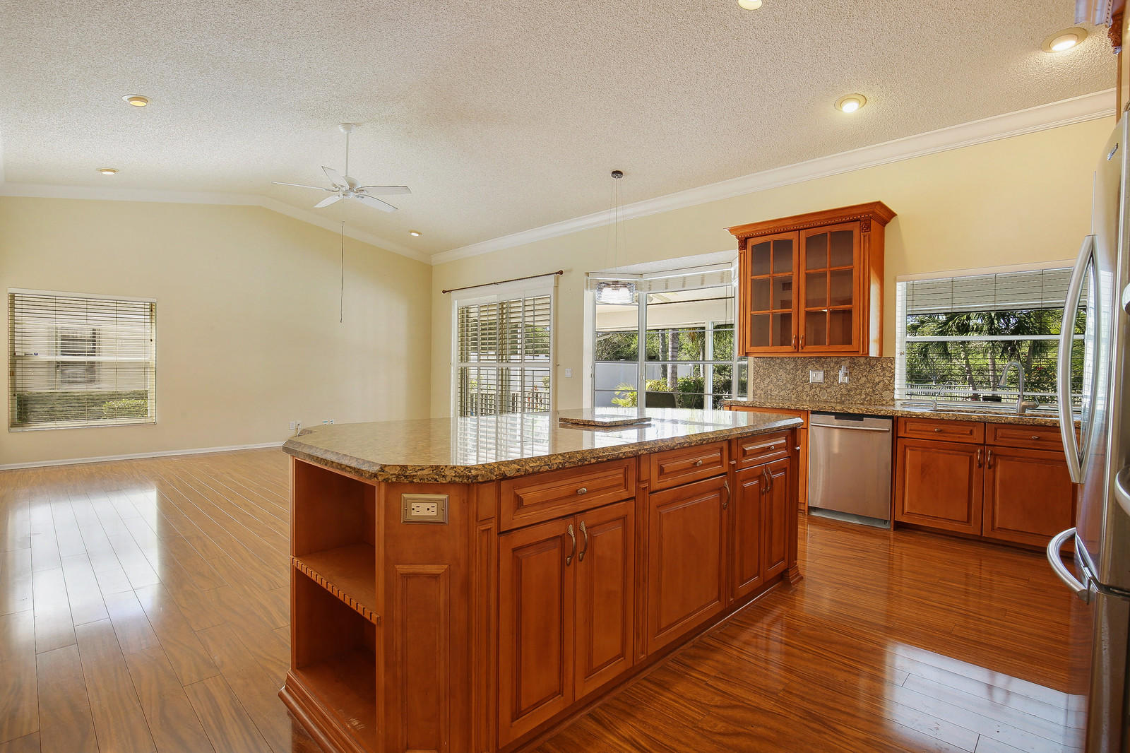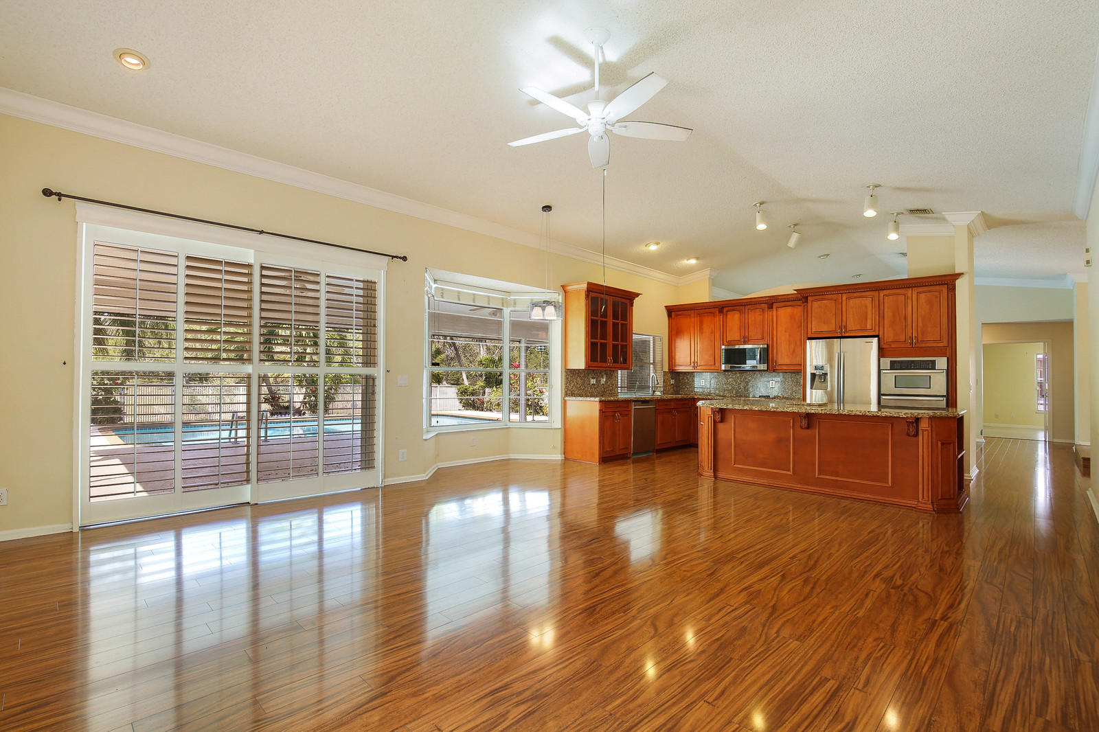 Desirable Bermuda model in guard gated Island Lakes of Loggers Run on private water lot. 2/2 split plan. Updated kitchen has wood cabinets w/mullion doors, dental crown molding, oversized center island + pantry w.pullouts. Stainless steel appliances too! Cozy breakfast nook w/bay window overlooks pool and water. Crown molding in kitchen, Family, Living & Dining rooms. Laminate flooring. Leaded glass, double front entry doors. Accordion shutters. Retractable screens on porch. Fenced yard. Spacious, interior laundry features Maytag washer & dryer, storage shelves & cabinets, ''slop'' sink + attic access. Plantation shutters on family room sliders. Updated bathroom vanities.3 full bathrooms, one having pool access. Seamless shower enclosures. ''A'' rated schools, parks & shopping in neighborh