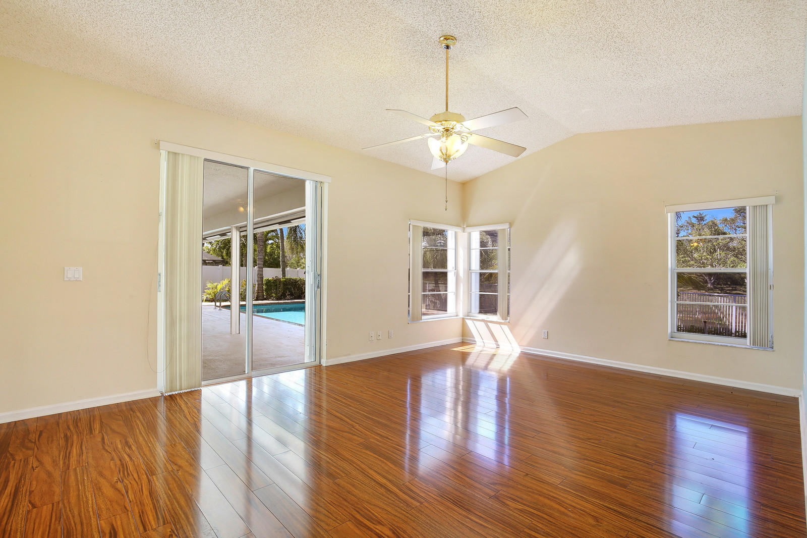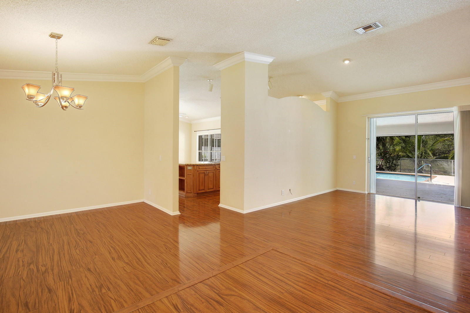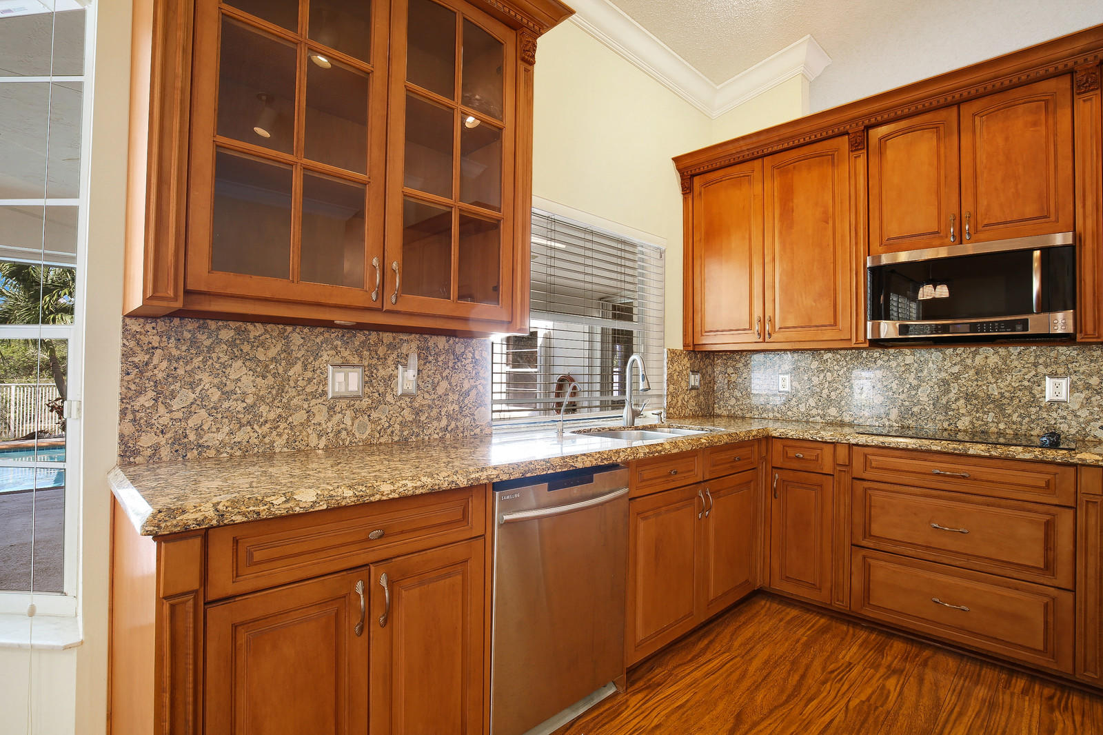 Desirable Bermuda model in guard gated Island Lakes of Loggers Run on private water lot. 2/2 split plan. Updated kitchen has wood cabinets w/mullion doors, dental crown molding, oversized center island + pantry w.pullouts. Stainless steel appliances too! Cozy breakfast nook w/bay window overlooks pool and water. Crown molding in kitchen, Family, Living & Dining rooms. Laminate flooring. Leaded glass, double front entry doors. Accordion shutters. Retractable screens on porch. Fenced yard. Spacious, interior laundry features Maytag washer & dryer, storage shelves & cabinets, ''slop'' sink + attic access. Plantation shutters on family room sliders. Updated bathroom vanities.3 full bathrooms, one having pool access. Seamless shower enclosures. ''A'' rated schools, parks & shopping in neighborh
