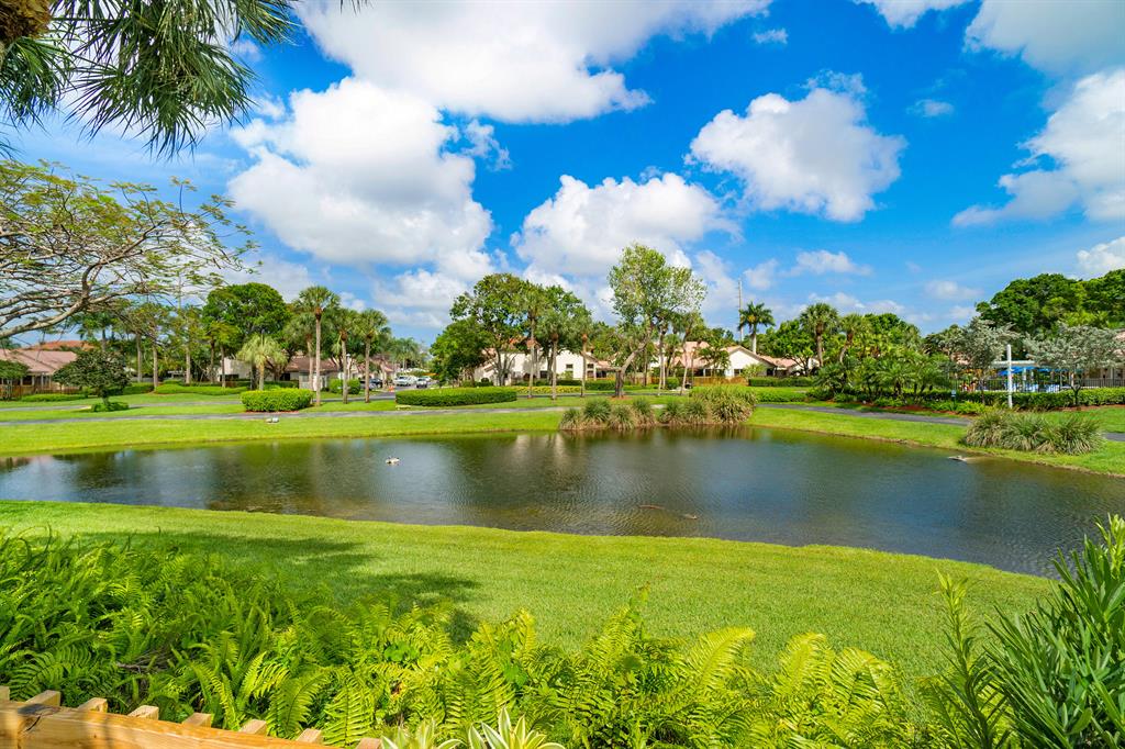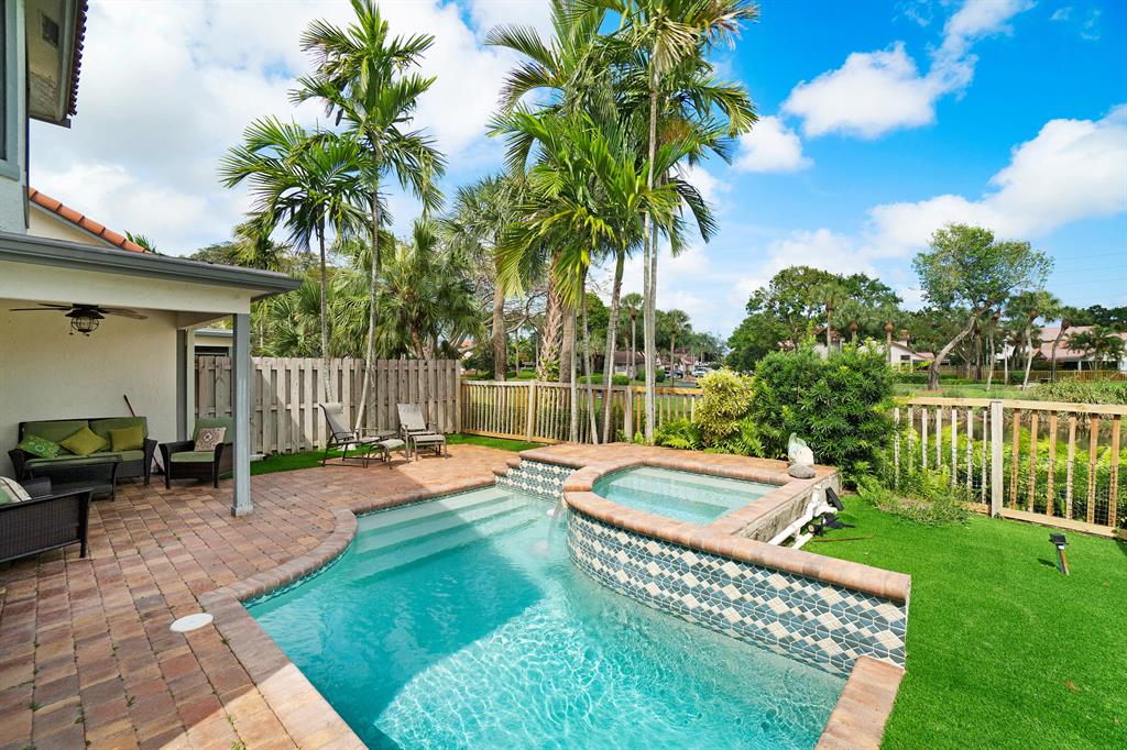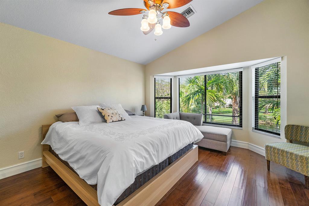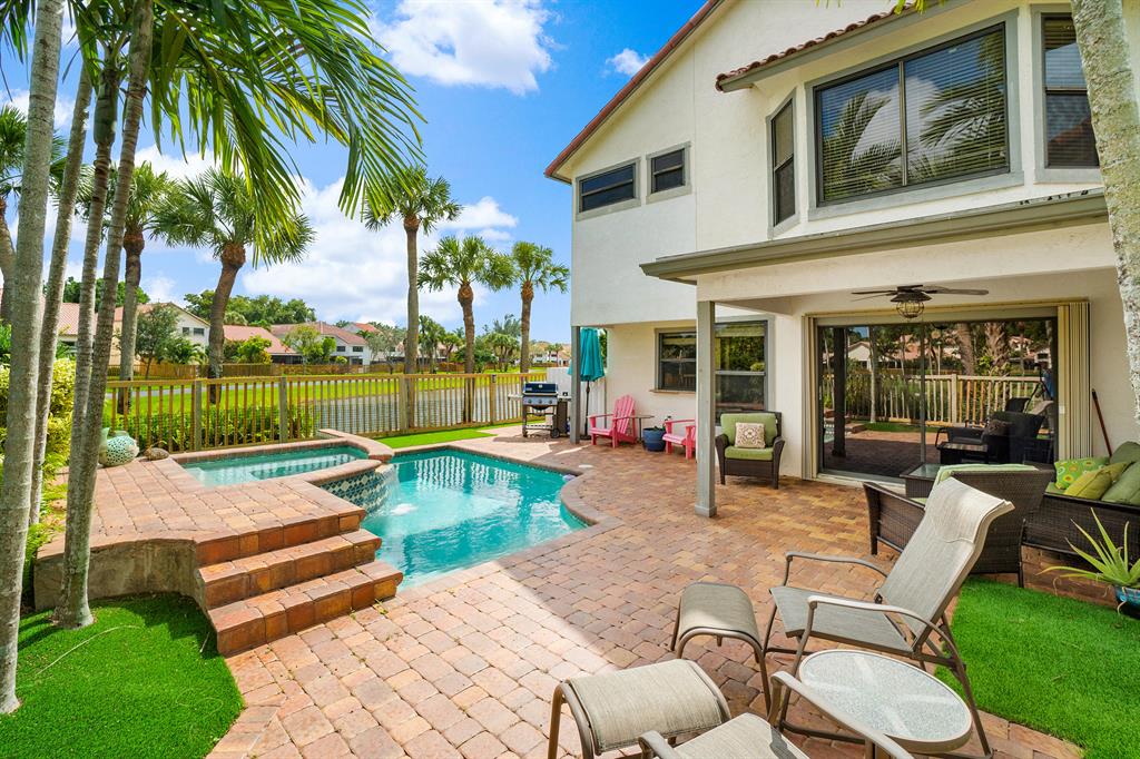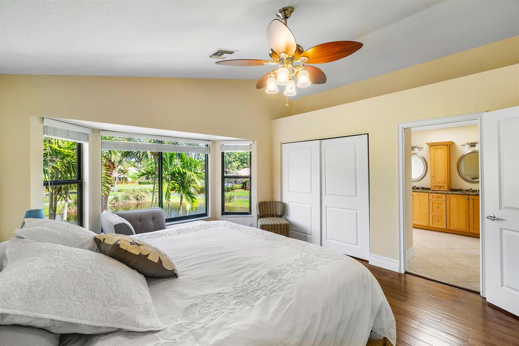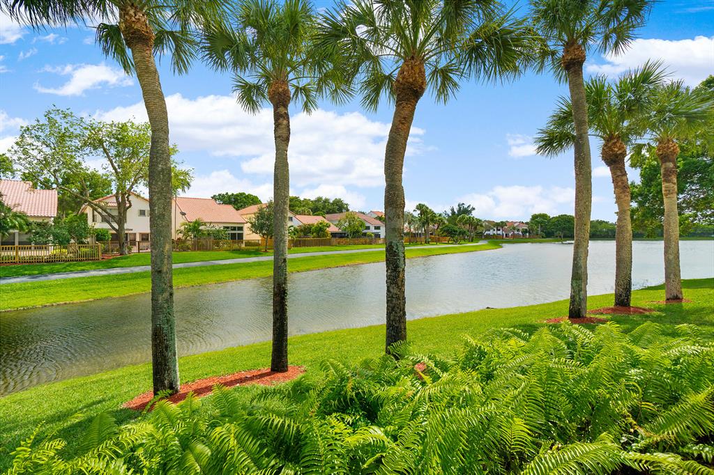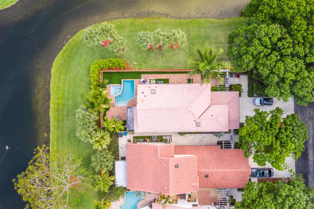 The absolute best lot in Wimbledon! Stunning corner lakefront point lot boasts panoramic water views from almost every room. Totally updated two story pool home offers wood floors throughout and impact windows. Beautiful kitchen with wood cabinets, granite and SS appliances. Spacious open floorplan with formal living room, dining room plus family room. Three bedrooms plus den/office. Gorgeous private outdoor living space with tranquil waterfall pool and oversized paver patio perfect for entertaining. Lushly newly landscaped totally fenced yard with low maintenance synthetic grass and eureka palms. Spacious master suite with stunning water views and updated granite bath. AC 2018. Wimbledon offers a 24 hour manned gate, heated community pool/spa & lakefront walking trail