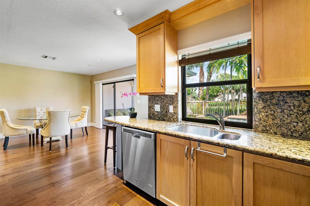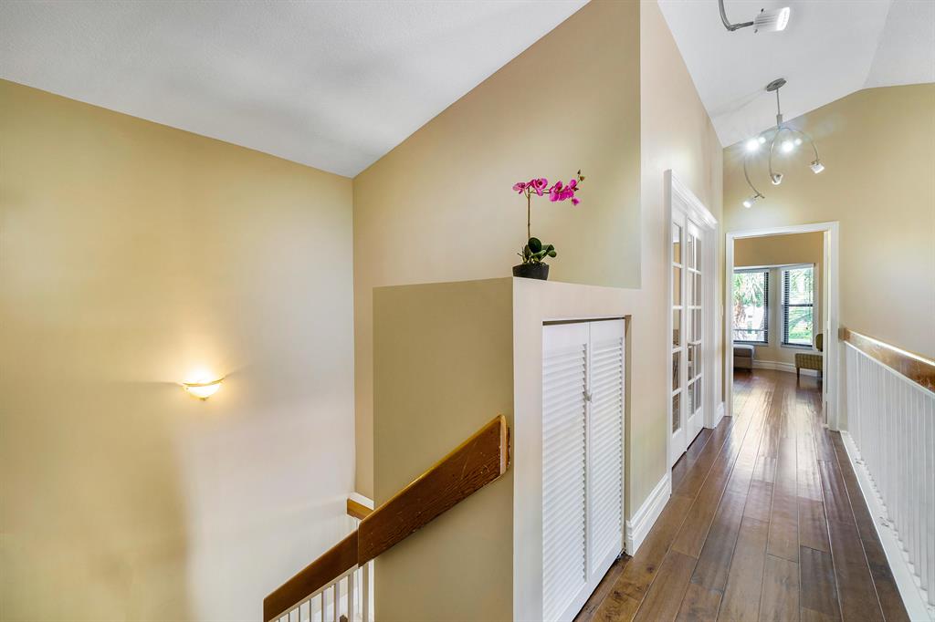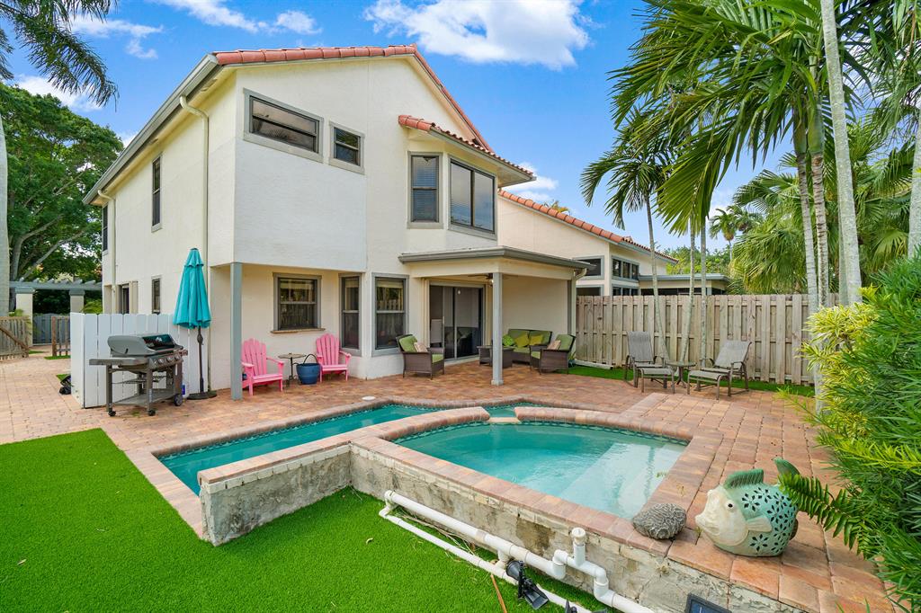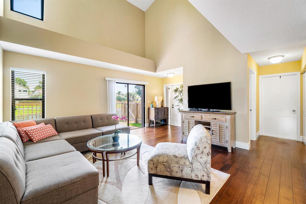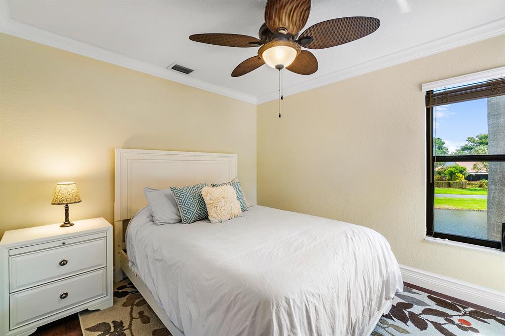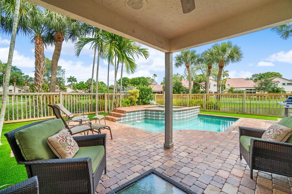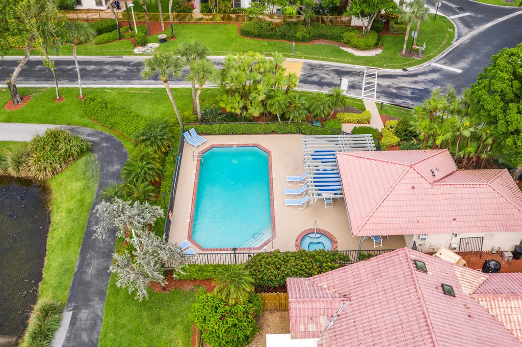 The absolute best lot in Wimbledon! Stunning corner lakefront point lot boasts panoramic water views from almost every room. Totally updated two story pool home offers wood floors throughout and impact windows. Beautiful kitchen with wood cabinets, granite and SS appliances. Spacious open floorplan with formal living room, dining room plus family room. Three bedrooms plus den/office. Gorgeous private outdoor living space with tranquil waterfall pool and oversized paver patio perfect for entertaining. Lushly newly landscaped totally fenced yard with low maintenance synthetic grass and eureka palms. Spacious master suite with stunning water views and updated granite bath. AC 2018. Wimbledon offers a 24 hour manned gate, heated community pool/spa & lakefront walking trail