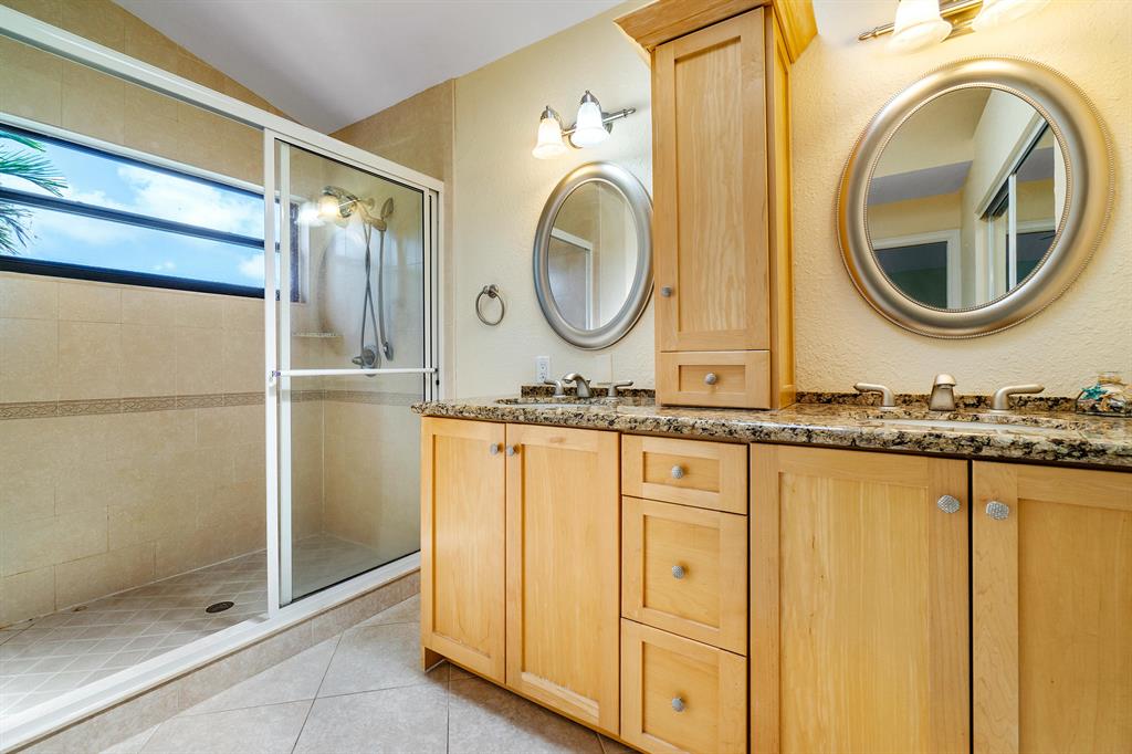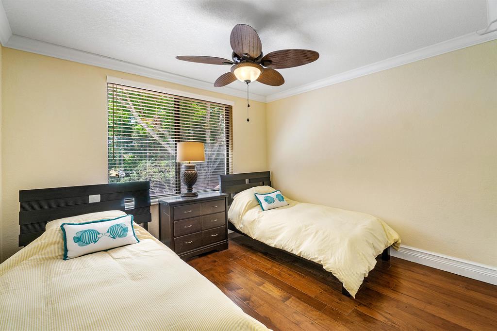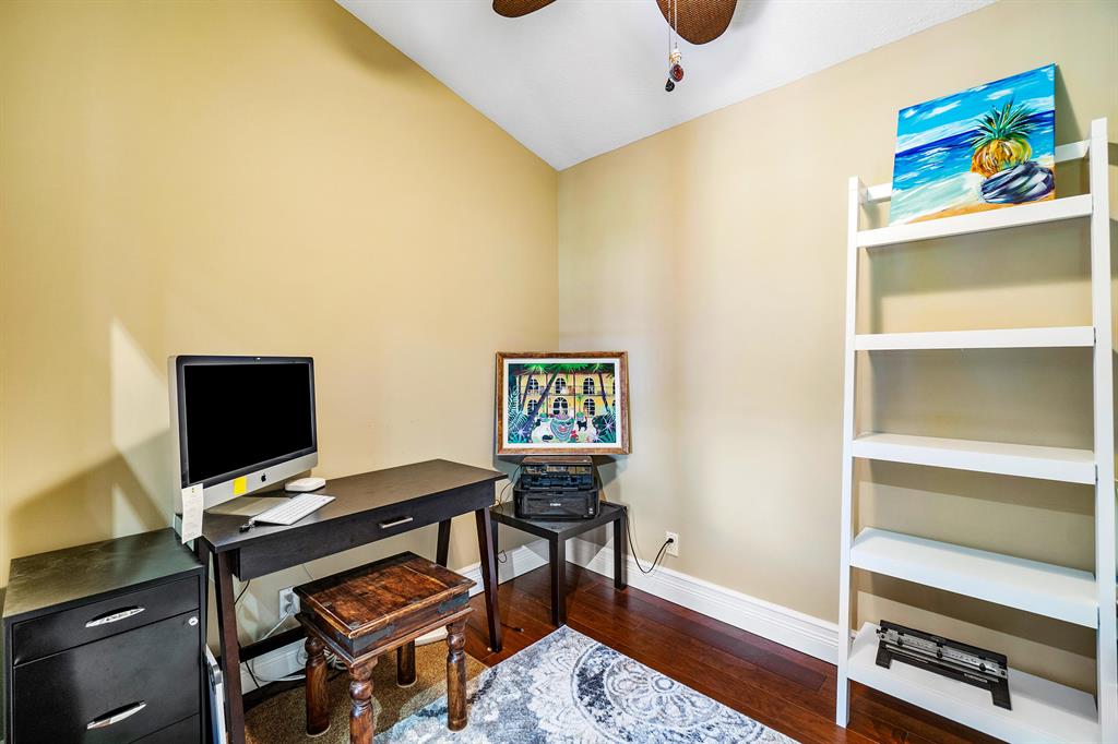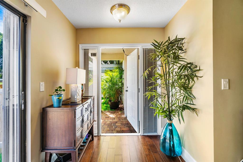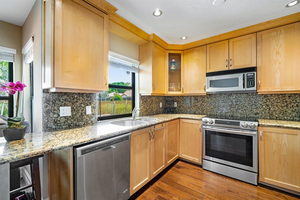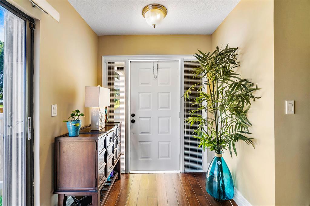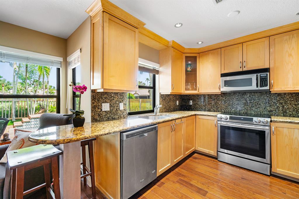 The absolute best lot in Wimbledon! Stunning corner lakefront point lot boasts panoramic water views from almost every room. Totally updated two story pool home offers wood floors throughout and impact windows. Beautiful kitchen with wood cabinets, granite and SS appliances. Spacious open floorplan with formal living room, dining room plus family room. Three bedrooms plus den/office. Gorgeous private outdoor living space with tranquil waterfall pool and oversized paver patio perfect for entertaining. Lushly newly landscaped totally fenced yard with low maintenance synthetic grass and eureka palms. Spacious master suite with stunning water views and updated granite bath. AC 2018. Wimbledon offers a 24 hour manned gate, heated community pool/spa & lakefront walking trail