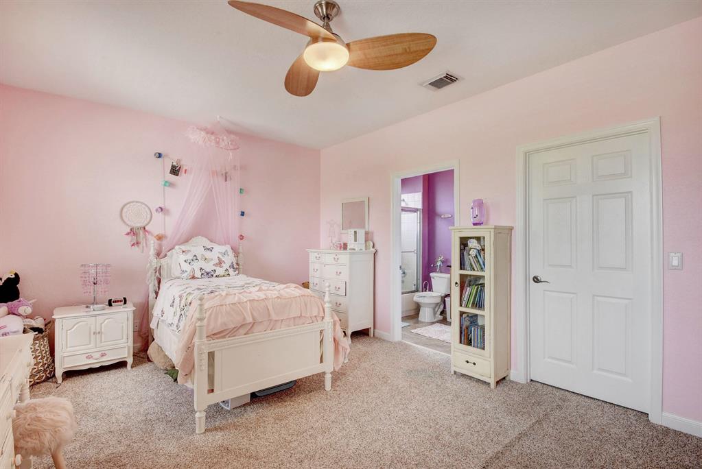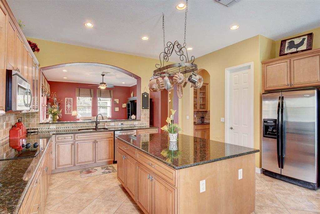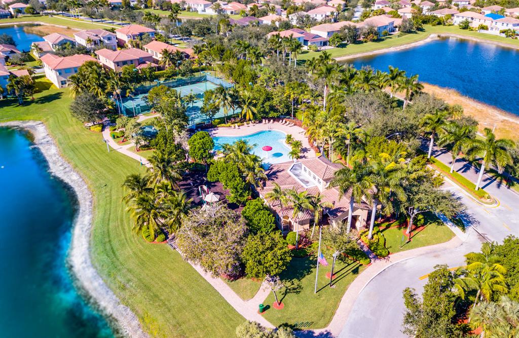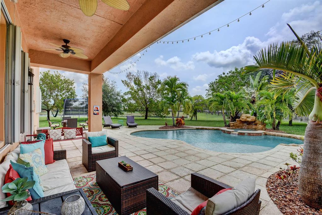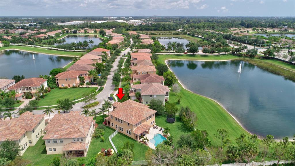 Exceptional POOL home on 1/3 acre pie shaped lot, lined w/Mature trees. HOA fees includes front & back lawn care. Fully enclosed fence. 5 oversized bedrooms, 4 have attached bathrooms & walk in closets, one Private BEDROOM & Full bath DOWNSTAIRS. Enormous kitchen with gourmet finishes, new double oven, Tumble-marble backsplash, wine rack, butlers station and huge center island. Tons of storage space. High ceilings. Charming archways. Very wide stairs lead to an Enormous LOFT/BONUS room. Lot of natural light. ACCORDIAN SHUTTERS thru-out. The backyard feels like a private retreat. You must be in it to fully appreciate. Terracina is a centrally located, man-gated community. We are within 10 minutes to I95,Turnpike, PBI Airport, Okeeheelee Park. 15 mins to CityPlace, Wellington Mall etc