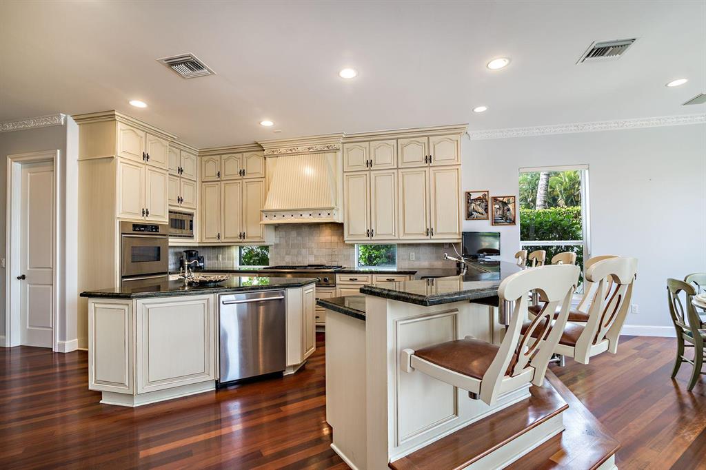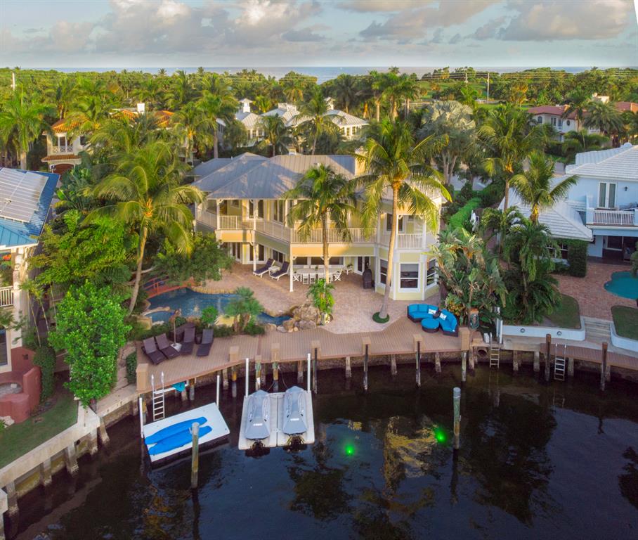 Boca Raton Florida. beach, golf, parks, shopping & dining. Intracoastal views 80 Feet of WATERFRONT 5 bed/5.1 bath, custom built SRD home. Watch gorgeous sunsets from your west-facing back patio. QUIET & PRIVATE no-wake zone, 2 floating docks & room for a boat. Walk-in wine cellar, large eat-in kitchen & island, billiards parlor, bar & wrap-around balcony. Brazilian hardwood, crown molding and custom details throughout. 3 car garage. Nestled in Sun & Surf. Tropical, lush landscaping provides privacy. Location offers a dream lifestyle; golf in the morning, beach strolls in the afternoon & kayaking in the evening.