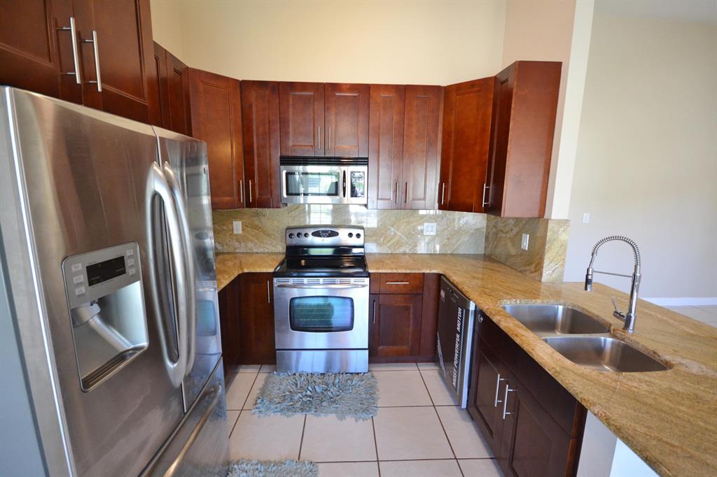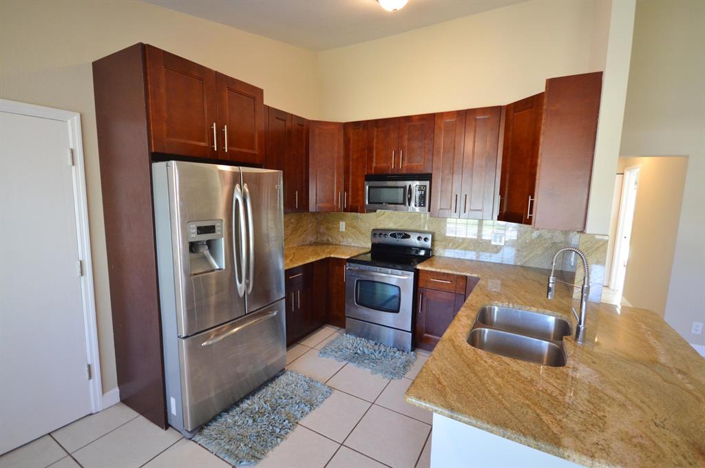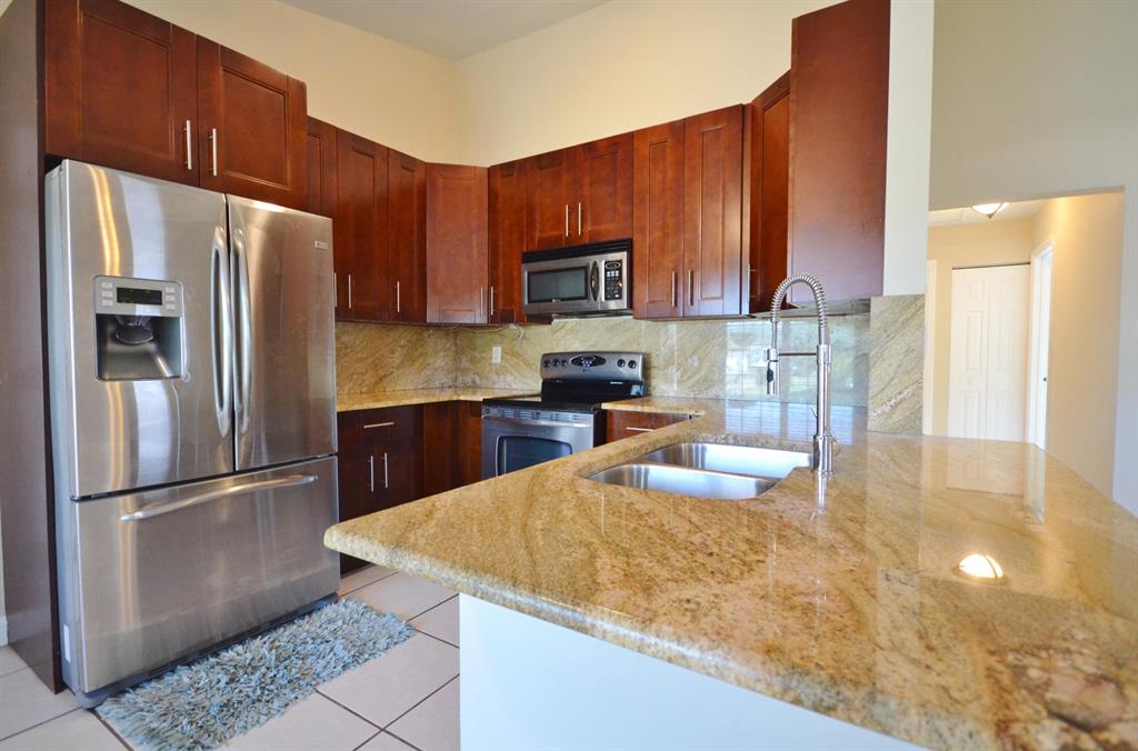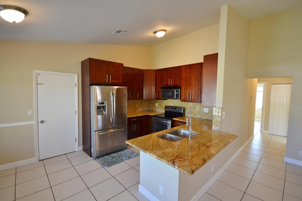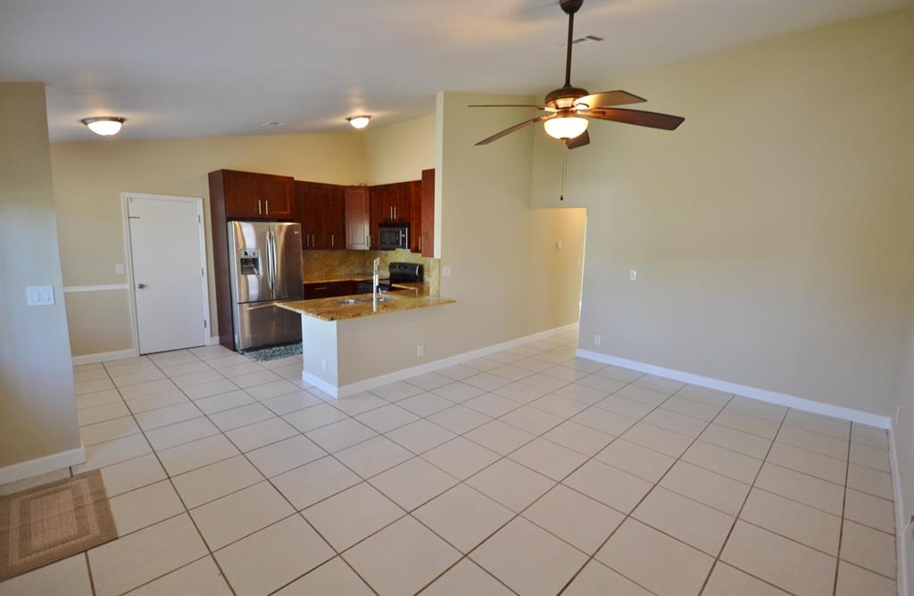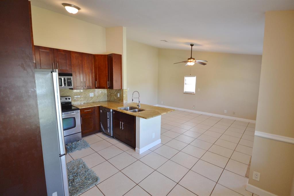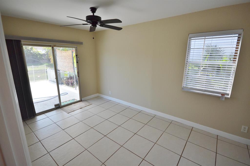 Lovely remodeled 3/2/1 in quiet family neighborhood with private pool, covered patio and serene water view. Kitchen recently remodeled with beautiful cabinets, granite counters, updated stainless steel appliances. Recently remodeled bathrooms. Ceramic tile throughout. Serene backyard on a canal with irrigation system for yard. Irrigation was just repaired. Freshly painted inside, patios front and back freshly painted. No application fee or interview required for this community. 2012 New Roof and approx 2016 AC system. 1996 Pool & Patio Addition. Community pool and park across the street.