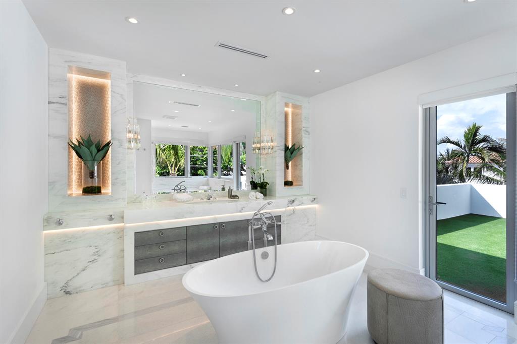 New dreamy Modern home developed by Todd Michael Glaser & designed by Portuondo-Perotti Architects. This light & crisp 7 Bedroom, 8.2 Bath estate is located in the highly sought-after mid-town section of Palm Beach in the ocean block on a high elevation. Glamour, luxury and order come together to provide a sleek, modern aesthetic characterized by beautifully delineated spaces.Curated gardens & superior landscaping programmed by Nievera Williams Design include 9 tranquil fountains thoughtfully placed throughout the property to create a dazzling atmosphere. Whether enjoying the west facing lap pool and spa, the multiple loggias or the magnificent central courtyard, the perfect space for entertaining & relaxing awaits you. Private beach access & bike trail access.