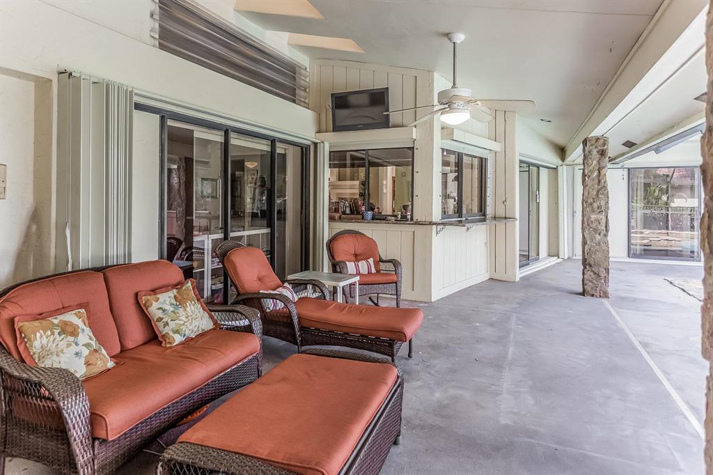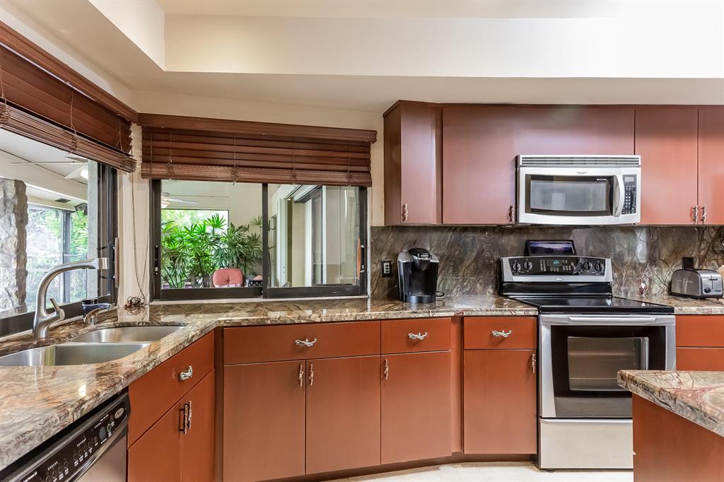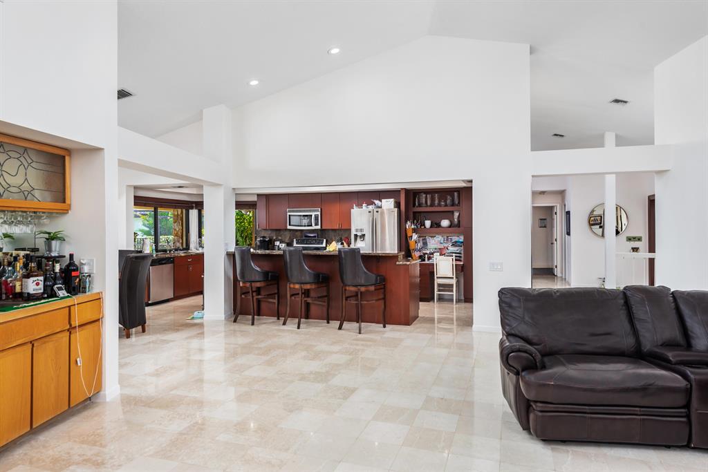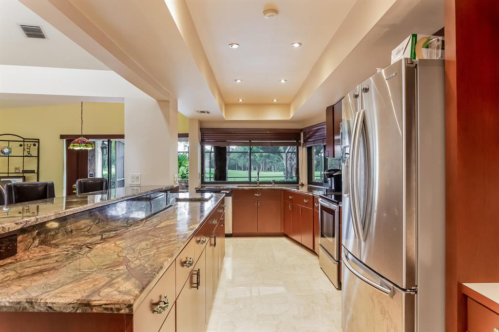 SELLER MOTIVATED, BRING ALL OFFERS! Bright and spacious with beautiful golf course views visible from every room, this one-story split floorplan home is tastefully updated with contemporary features. Open floorplan 4-bedroom (or 3-bedroom + office) home boasts marble floors and high volume ceilings. Main living area with great room bathed in natural light shining through the many large windows and glass doors. The renovated kitchen with island, open to the great room, includes stone counters, stainless steel appliances, and a breakfast nook. Master bedroom has brand new wood-like flooring and large walk-in closet. Recently renovated master bathroom.