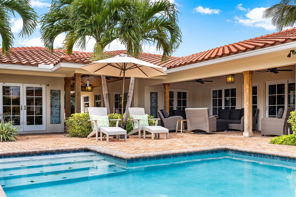 This exquisite, rare unobstructed refuge with tropical landscape resort style pool and gustcasita offers 4 bedrooms and 3.5 bathrooms.On the interior, you will find an open floor plan with beautiful decorative ceramic tileflooring, high ceilings, large modern kitchen and baths, all impact windows anddoors. Coffered ceilings and large glass sliders in the living area make this theperfect space for family gatherings.On the exterior, you will find an expansive resort style pool (38 x 18 foot) settingfeaturing large Chicago brick paved patio deck and tropical landscaped forcomplete privacy.The home is one block from the beautiful Palm Beach Shores Beaches. Deededbeach access and parking pass also included in PBS ownership.