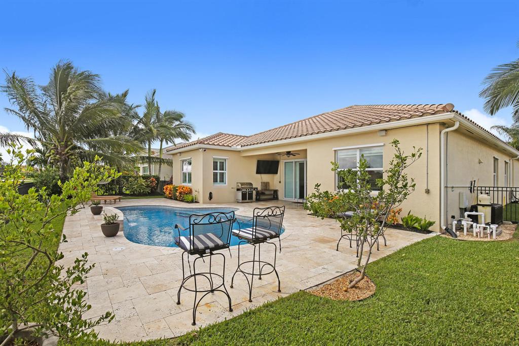 SMART HOME! The owners meticulously cared for this spectacular 4 bedroom home with 3 car garage, salt water pool and peaceful eastern lake views. This Monaco model offers an open floorplan with hardwood floors, upgraded kitchen cabinetry featuring top/bottom soft close, 12 foot ceilings, plantation shutters throughout, his/her walk-in closets, newly replaced carpet, garage cabinetry, large laundry room and newly replaced landscaping/accent lighting. The smart home can control AC, lighting and irrigation all from an app on your phone. PortoSol is a gated community with a resort style clubhouse including a state of the art fitness center, heated pool/ jacuzzi , clubroom with TV, billiard table, basketball court, tennis court, game room, children's playground, sidewalks and fitness trails