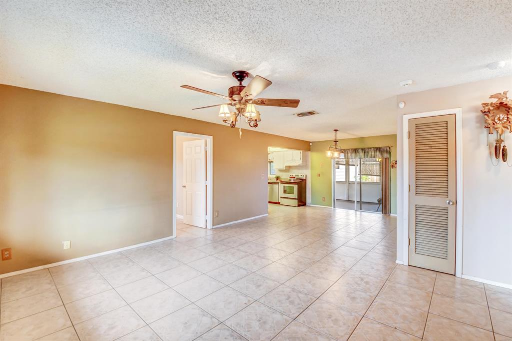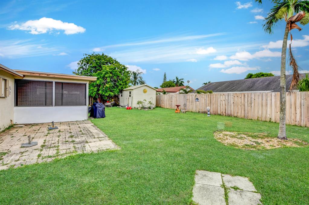 Open, & bright 3 bedroom 2 Bath. Garage conversion into 3rd bedroom, floors built up to be level with rest of house w/impact glass window and closet. Tile flooring throughout. Impact Windows/Doors 2014/plus accordion shutters too. Sunny kitchen with tons of cabinets, newer stainless appliances & Osmosis Water filter in the kitchen sink. Large backyard that is fully fenced in & very private. Teds Shed in backyard anchored to the ground Hurricane Category 3 rated & electrical ready. Huge screened in/covered patio. Great curb appeal with the beautiful landscaping. Double wide driveway. Newer Roof from 2014 & new A/C replaced in 2010. New electrical panel. Large inside laundry/utility room with extra refrigerator & alot of pantry space. Flood lights in front and back of home.
