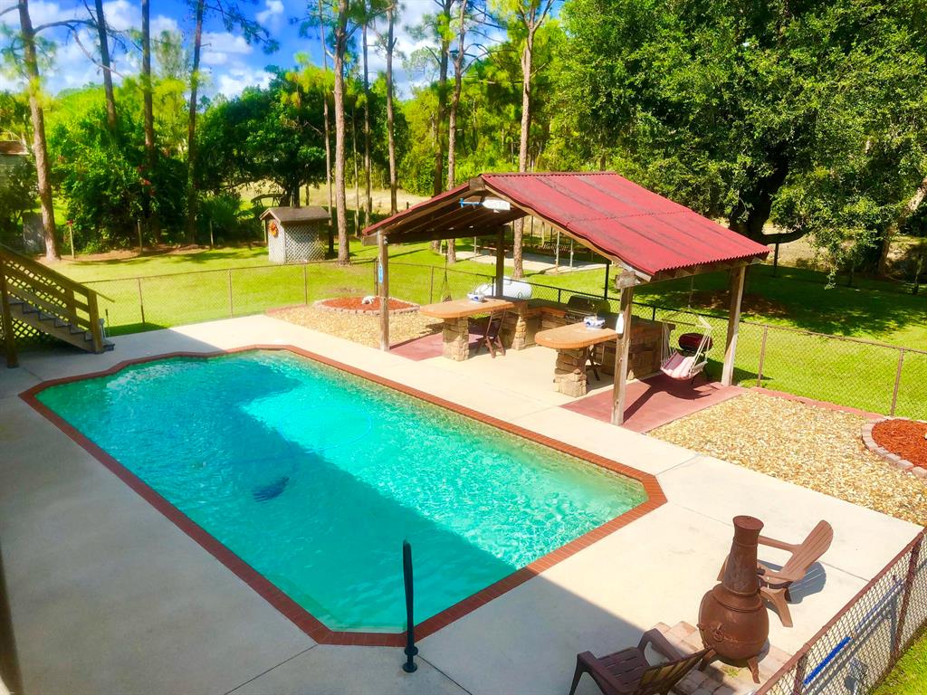 THIS IS TRULY A PROPERTY THAT WILL BE APPRECIATED WHEN SEEN !!! THIS ADORABLE HOME HAS IT ALL !! NESTLED ON AN OVERSIZED CORNER LOT 1.47 ACRES - THIS WELL MAINTAINED 3 BEDROOM 2 BATH POOL HOME WITH FRONT SCREENED PORCH, BACK PORCH AND PRIVATE BALCONY OF MASTER PLUS SEPARATE 1 BEDROOM APT GUEST QUARTERS ON 1ST FLOOR WITH PVT SCREENED SITTING AREA. AND FOR HIM- HUGE DETACHED CBS WORKSHOP/ MANCAVE WITH COMPRESSOR, WATER AND ELECTRIC !! THIS HOME IS SITUATED ON A QUIET STREET WITH NO REAR AND EASTERN NEIGHBORS. WITH NO HOA- THIS IS SUITABLE FOR A HOME BASED BUSINESS REQUIRING A LARGE DET BLDG. BRING YOUR RV, BOAT OR TRAILER. THE 2 CONCRETE DRIVEWAY WITH 2 GATE ENTRANCES CAN HOLD UP TO 12 CARS !! DESIGNER KITCHEN WITH GRANITE, STAINLESS APPL, ISLAND WITH COOK TOP AND 42 '' CABINETS !!