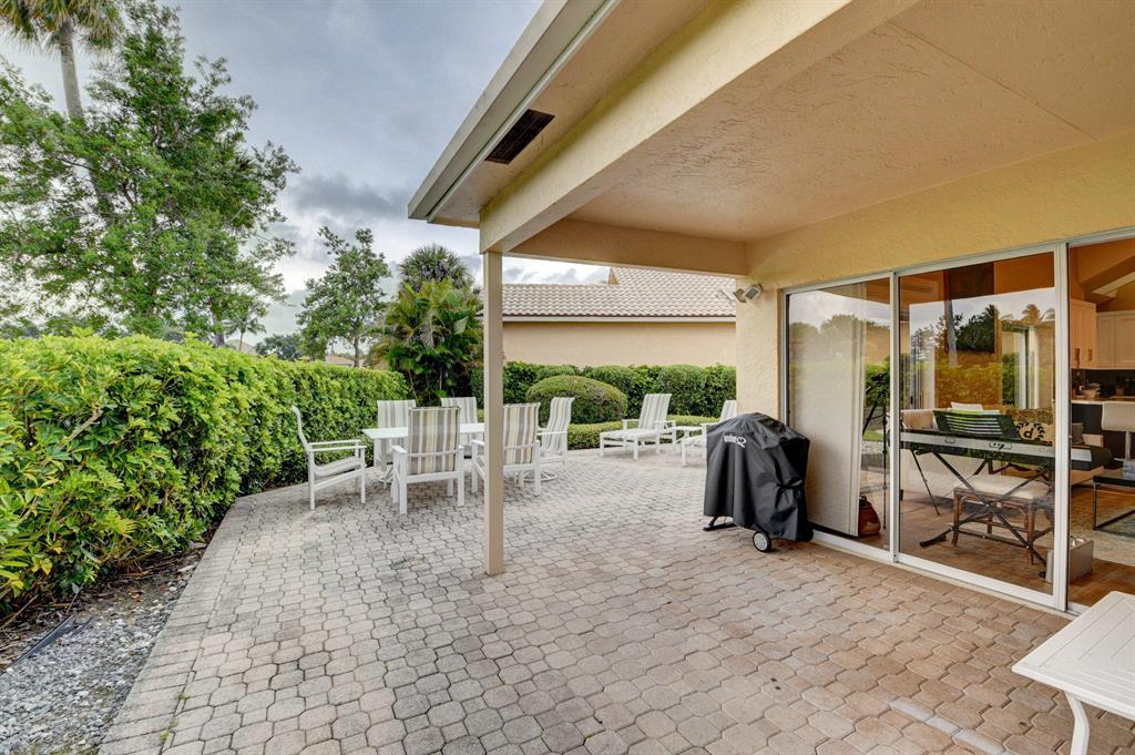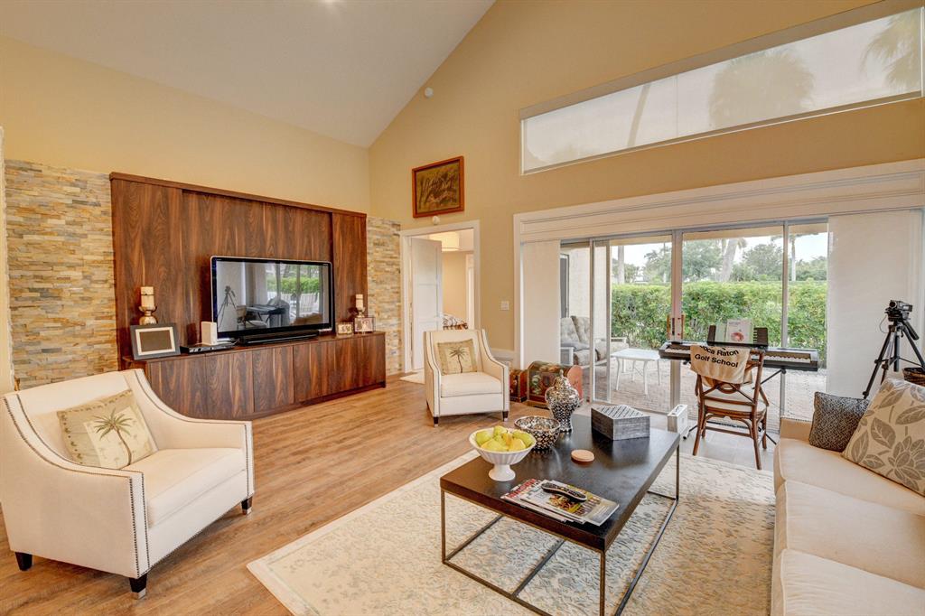 Totally renovated by Marc Stano.Located on the 7th hole of club course. Newer roof, lovely landscaping, beautiful natural light from sunrise coming in from skylights as well as western sunsets. Fantastic newly renovated bathrooms and kitchen which opens up to living room. Newer appliances. Third bedroom can be used as office/den. Built-ins in office and living room. Plank wood like laminate throughout.Super community pool and beautify maintained.Capital contribution at closing is $1000. Applications $250 plus 100.