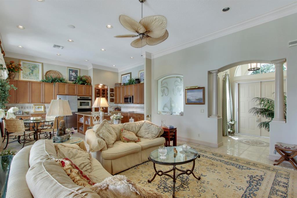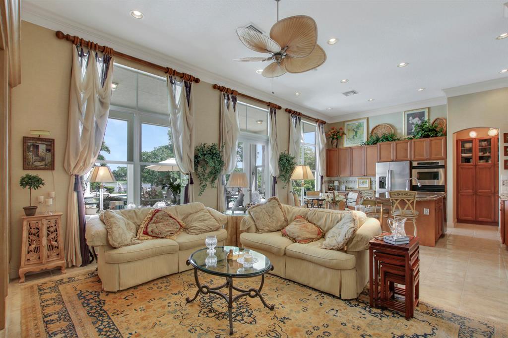 Dazzling tropical oasis with water & golf views in this 3 br 3 bath home. This home sits on a pristine lot in the highly sought after Private community of The Preserve of Iron Horse Golf Club. One of the few communities where you can live in a private Golf Club with No mandatory membership. This home has lots of natural light with high arched windows and views from every room. Spacious open concept kitchen is off the family room. This home has everything from a private library to a formal dining room and sitting area. Off the Master bedroom is the most perfect sitting area to read a book overlooking the gorgeous views of the green, pool, lake and golf course. From the large screened patio you will have another breathtaking view! Elegantly furnished, this home awaits you!