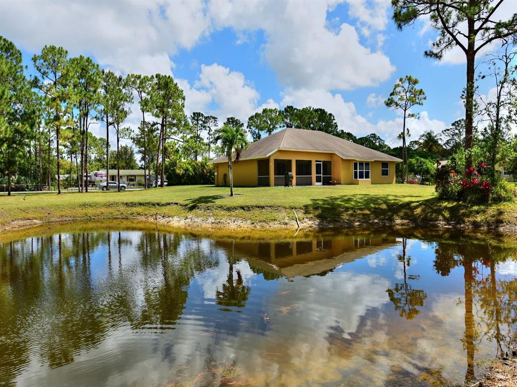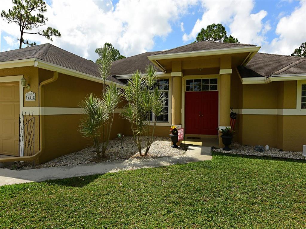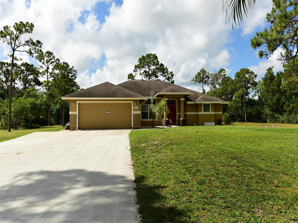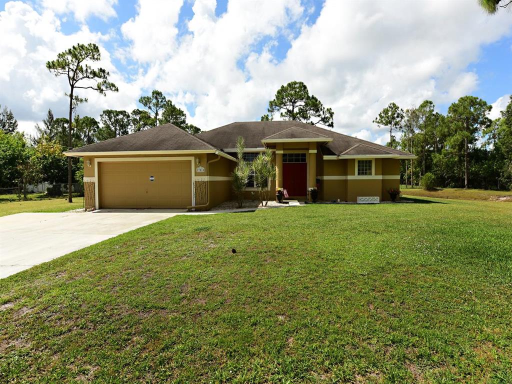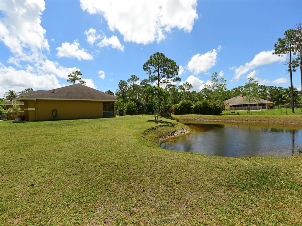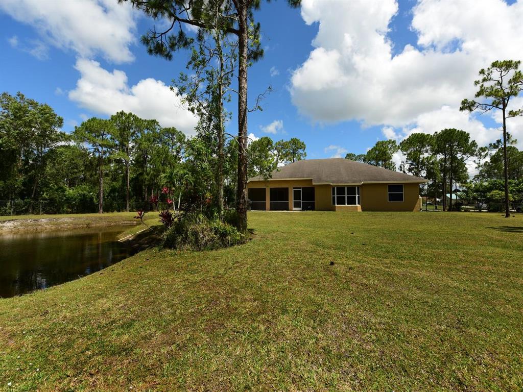 appraisers - no seller concessions. Original roof, but in good condition. No major upgrades.Great location for this freshly painted (in and out), CBS home in the Acreage. Engineered Wood flooring in all living areas, berber carpet in bedrooms. The kitchen has oak cabinets, a snack bar, and is open to the family room. Master has huge walk in closet, a roman tub, and seperate shower. The lot is fully fenced (chain link). There is a sprinkler system off the pond, but needs repairs. Nice family home, close to Royal Palm.