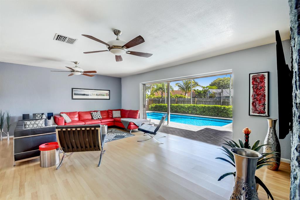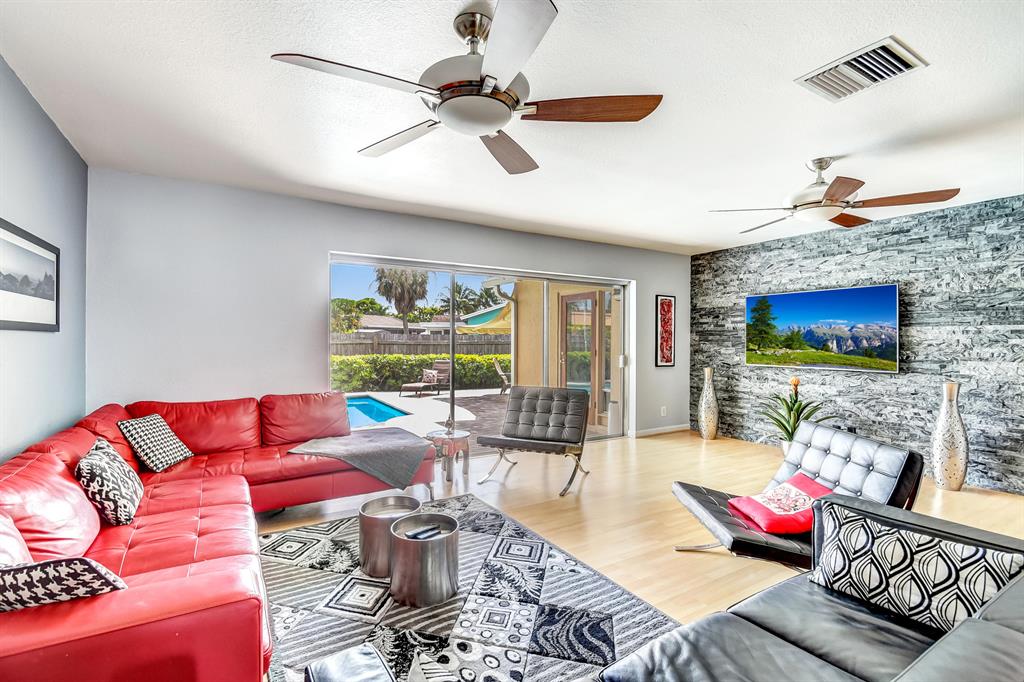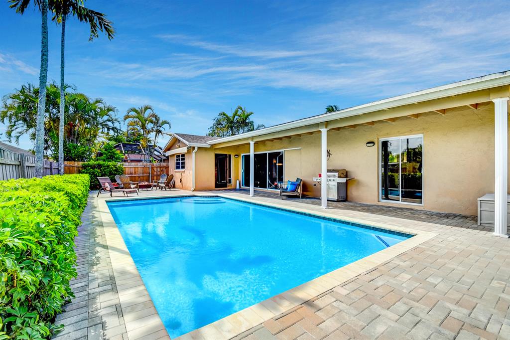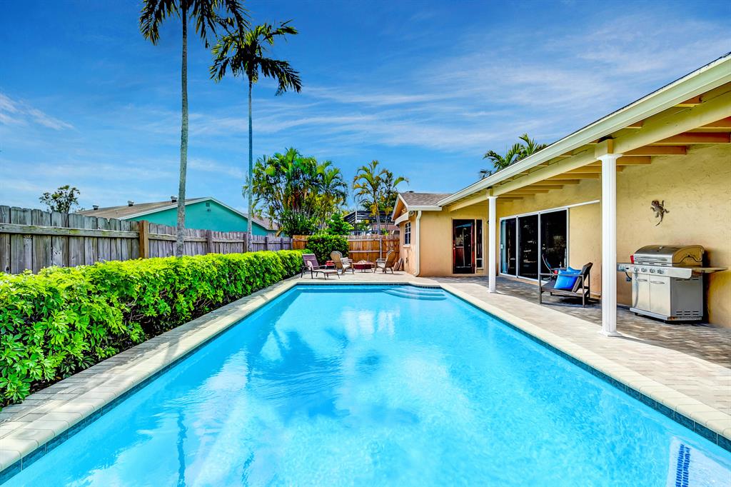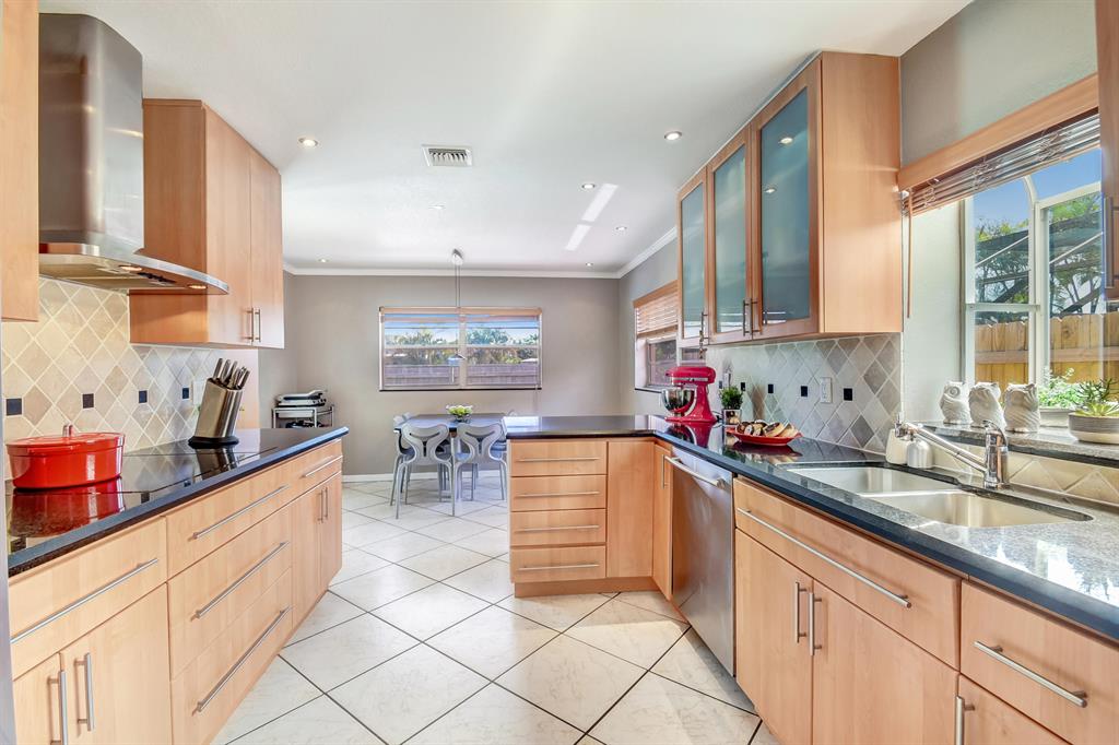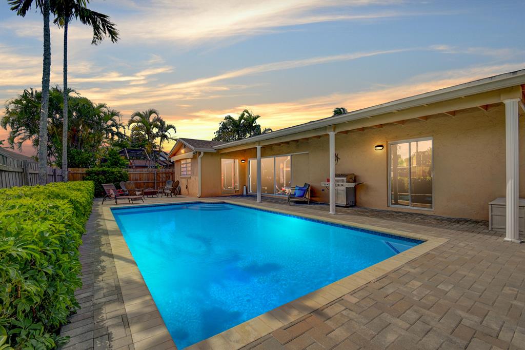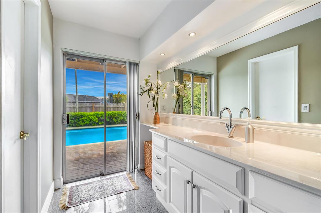 Spacious, Open, Well Maintained Pool Home! Featuring 3 bed, 2 bath, 2 car garage home & amazing pool and yard! Updated kitchen has granite counter tops, tumbled marble backsplash, stainless appliances including a Jenn Aire dishwasher, Stainless hood that vents out, cooktop, wall oven, wood cabinets with pull out drawers & sunny eat in area/family room with French door leading to the pool. No carpet! Tile & laminate throughout including a fabulous foyer, huge living room, dining room, & oversized bedrooms, master bedroom has a huge walk-in closet & en-suite w/separate shower w/granite tile flooring. Living room has a set of 3 sliders that open all the way and a stone wall. Tons of recessed lighting plus ceiling fans. Amazing backyard features pavered patio, large swimming pool,