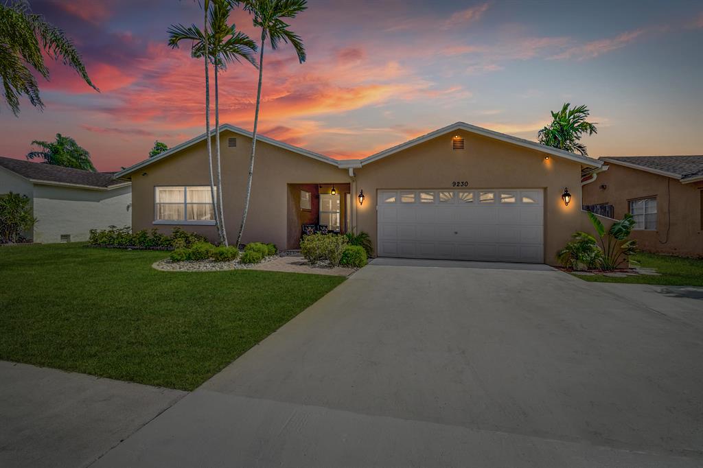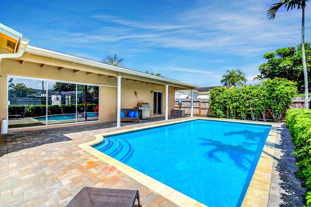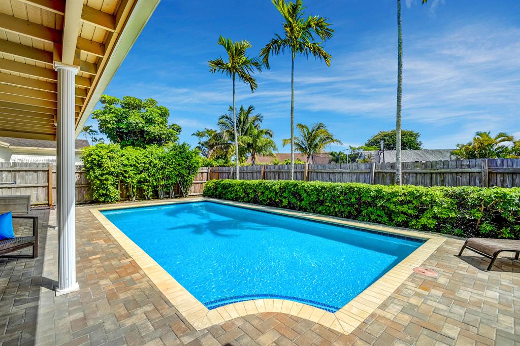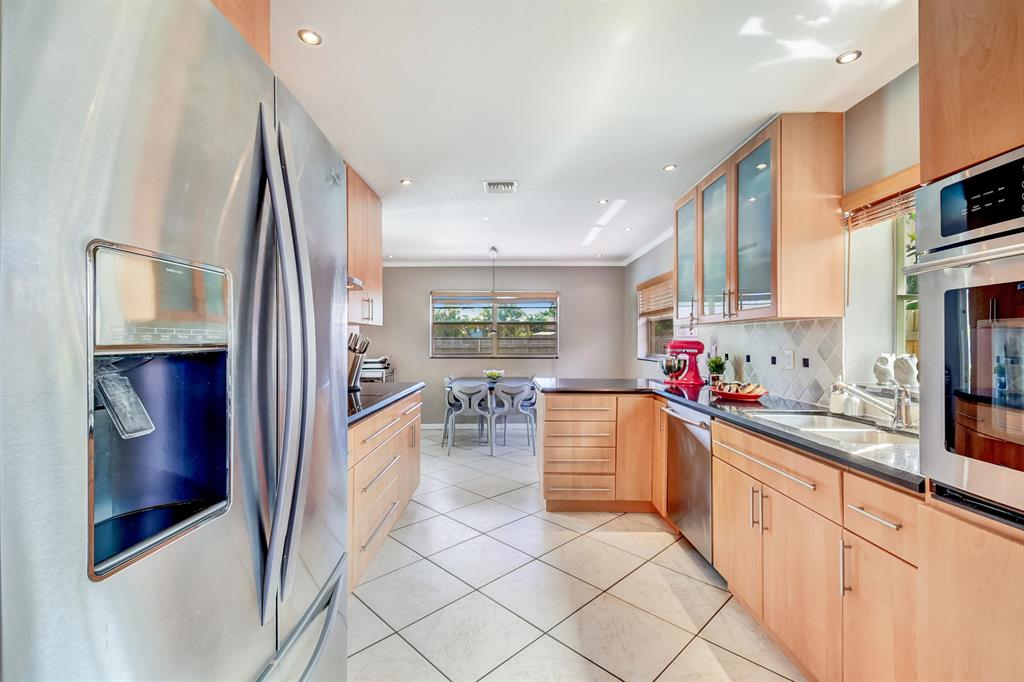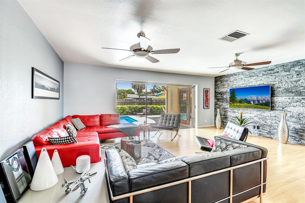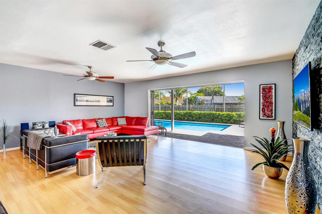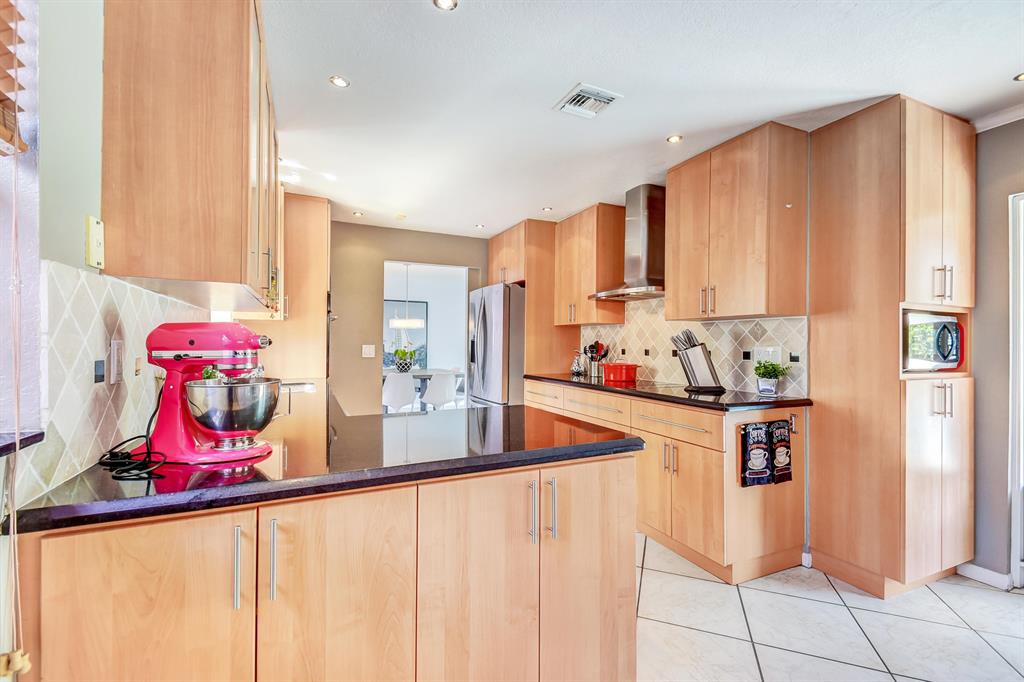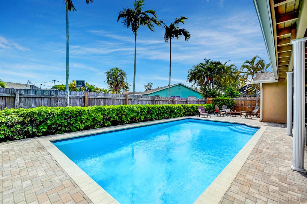 Spacious, Open, Well Maintained Pool Home! Featuring 3 bed, 2 bath, 2 car garage home & amazing pool and yard! Updated kitchen has granite counter tops, tumbled marble backsplash, stainless appliances including a Jenn Aire dishwasher, Stainless hood that vents out, cooktop, wall oven, wood cabinets with pull out drawers & sunny eat in area/family room with French door leading to the pool. No carpet! Tile & laminate throughout including a fabulous foyer, huge living room, dining room, & oversized bedrooms, master bedroom has a huge walk-in closet & en-suite w/separate shower w/granite tile flooring. Living room has a set of 3 sliders that open all the way and a stone wall. Tons of recessed lighting plus ceiling fans. Amazing backyard features pavered patio, large swimming pool,