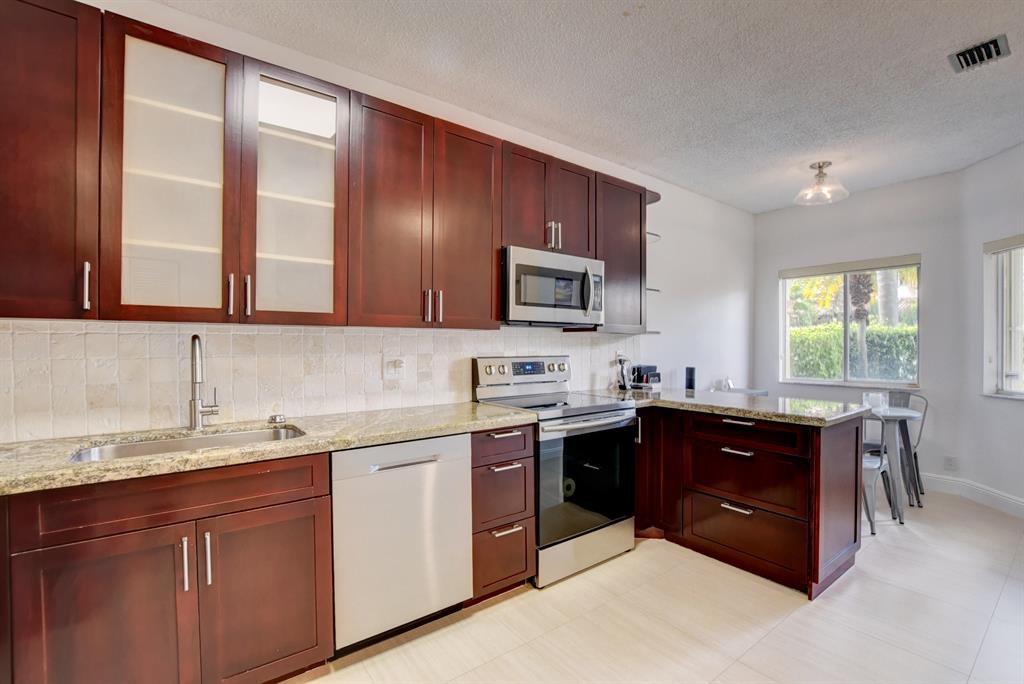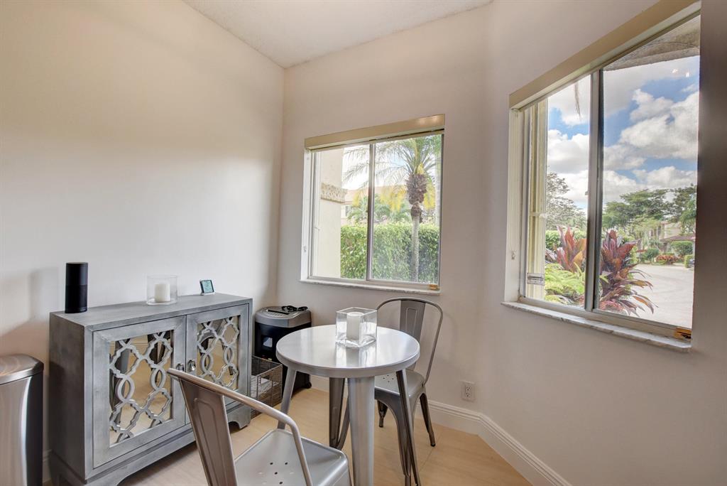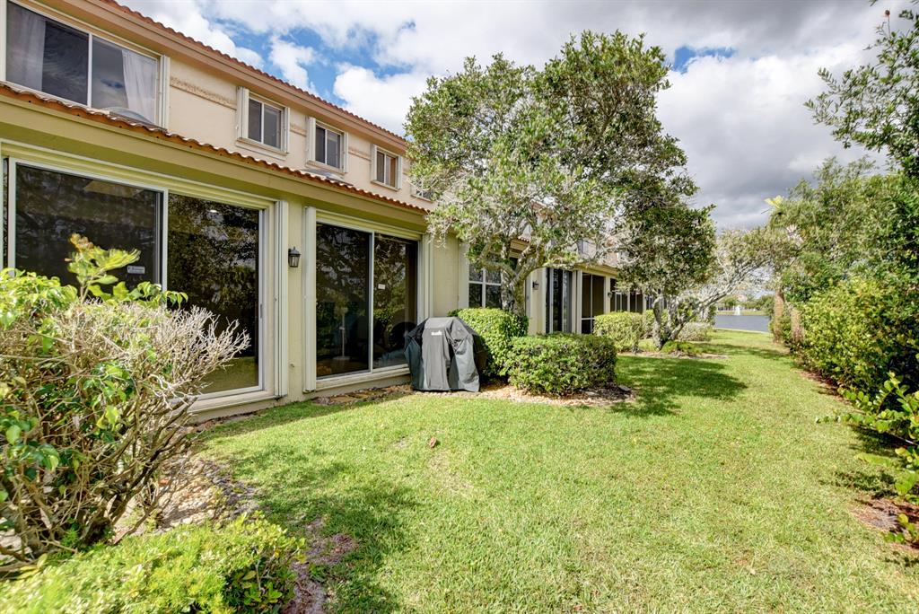 Light, bright and spacious 3 bedroom, 2.5 bathroom townhome with large enclosed sunroom/patio in highly desirable Boca Pointe. Beautifully upgraded eat-in kitchen with wood cabinets, granite countertops, stainless steel appliances and a Culligan water purification system. Open floor plan with new 24'' neutral tile flooring on main level, lush carpeting in bedrooms, freshly painted, updated fixtures, large master with walk-in California closet, numerous skylights for great natural light. Stunning lake view with lots of privacy. Accordion hurricane shutters throughout. This all age community offers a fantastic renovated entrance, manned guard gate and community pool just steps away. Optional golf, tennis, & social memberships available. A rated schools! A fabulous community to call home!