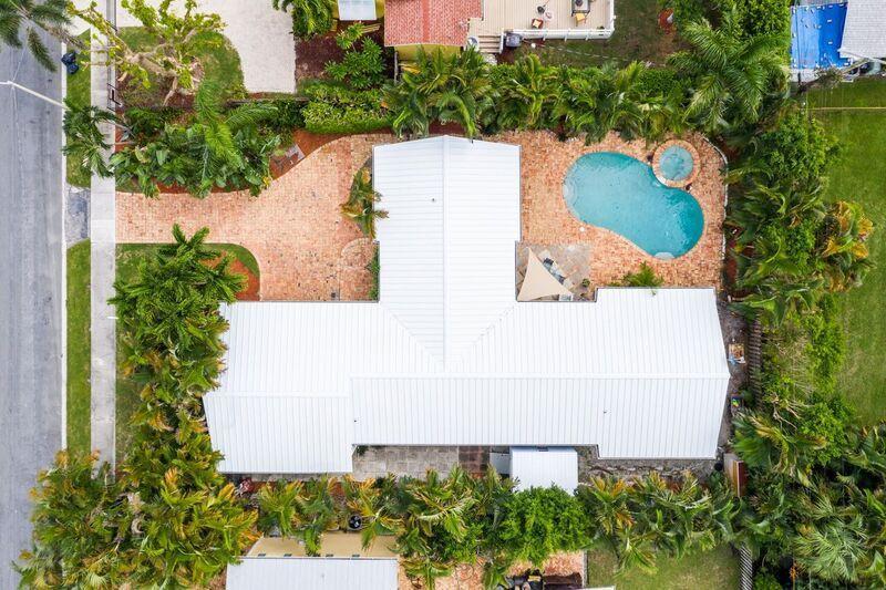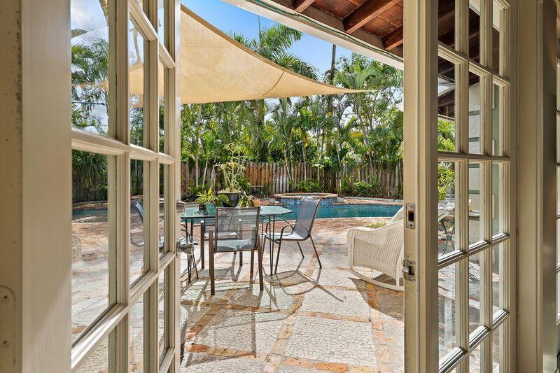 :Located just a stone's throw from the intracoastal and located in the very desirable Soso neighborhood this 1955 modern mid-century home is an entertainers delight.. This home flows with an artsy vibe and the French doors absorbing a complete wall in the both the family and dinning rooms provides an abundant supply of beautiful natural light. Whether it be the travertine flooring flowing out on to the Chicago paver patio with the 32 foot swimming pool and a cascading flow of water over the spa this home is a retreat.
