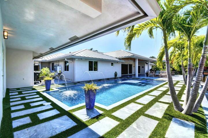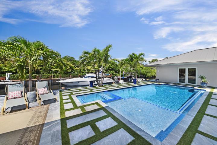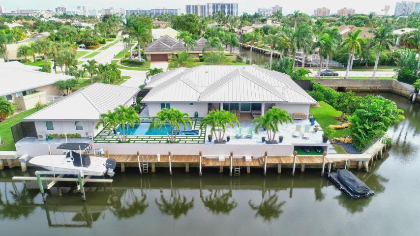 TOTALLY RECONSTRUCTED HOME, COMPLETED JULY 2018. Contemporary Ranch Style masterpiece located on an island in the heart of prestigious Boca Bay Colony. Featuring over 3,500 SqFt under Air / 4,885 total SqFt under roof with 241' of ocean access water frontage. Interior features 4 bedrooms/4.1 baths with separate poolside office/guest house and 3 garage spaces. Soaring ceilings with LED lighting crown each superbly designed space complimented by the finest imported porcelain flooring with quartz counter-tops and vanities emphasizing a minimalist theme where ''less is more''. LED lighting, salt filtration pool with chiller & Spa, upscale appliances and cabinetry, Smart House security , Impact windows, metal roof, full house generator.