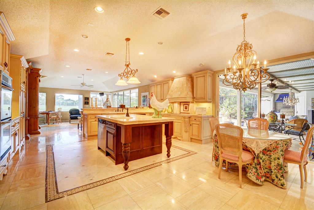 PRICED FOR IMMEDIATE SALE. ENTER THE HOME THROUGH THE OVERSIZED DOUBLE FRONT DOORS TO EXPANSIVE GOLF AND LAKE VIEWS. PANORAMIC VIEWS THROUGH THE SLIDERS IN THE FAMILY ROOM AS WELL AS THE LIVING ROOM. HUGE, GORGEOUS 100K DOWNSVIEW KITCHEN WITH UPGRADED STAINLESS APPLIANCES,CUSTOM REFRIGERATOR AND DOUBLE DISHWASHERS. AMAZING SPLIT FLOOR PLAN. TRUE 4 BEDROOM WITH SEPARATE WING FOR GUESTS. 2 HALF BATHS, ONE IS CABANA. GORGEOUS OUTDOOR KITCHEN - GREAT FOR ENTERTAINING. HIS/HER BATHS IN MASTER WITH FITTED CLOSETS. STORAGE THROUGHOUT. LARGE LAUNDRY ROOM WITH CLOSET AND CABINETS AND AMPLE COUNTERTOP FOR FOLDING. HUGE GARAGE WITH SPACE FOR GOLF CART.BEAUTIFUL FRUIT TREES ALL ON GORGEOUS LAKE AND GOLF LOT. SALT WATER POOL, NEW DIAMOND BRITE AND COPING. A MUST SEE AND APPRECIATE
