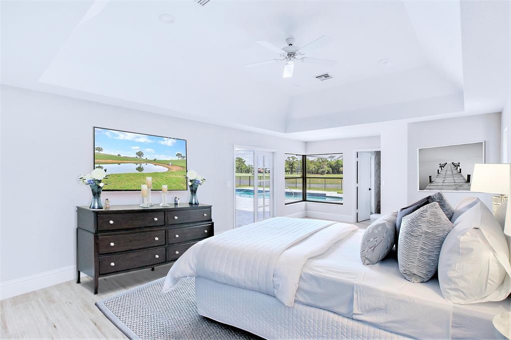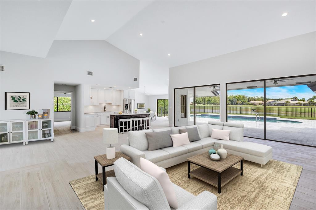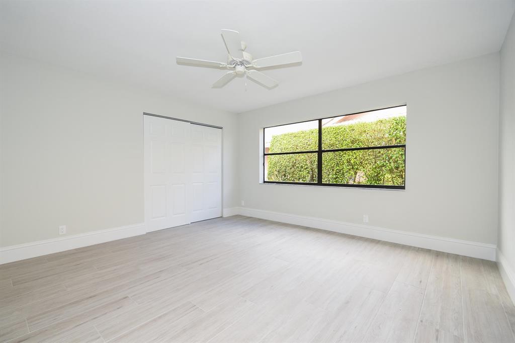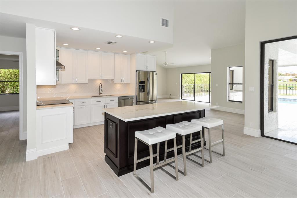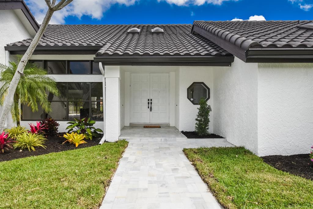 Mandatory golf membership $65,000. Beautiful contemporary with designer finishes. Stunning 3 bedrooms with 4 full baths. His & her luxury baths. Sited on large interior lake lot with golf course views. Porcelain plank floors. New appliances. Over sized pool with new marble travertine pavered pool deck and driveway. $30,000 refunded at the sale of your home. Two 18 hole golf courses along with full country club amenities. Boca Woods is an all age community close to parks, shopping houses of worship, I95 & Tpke. Yearly dues $15309 + dining minimum of $1500 yearly. Non tipping club. Assessment $84 monthly. JOA $301. Includes 24 security, cable & internet. Great Tennis. Consult manager for tour of club.