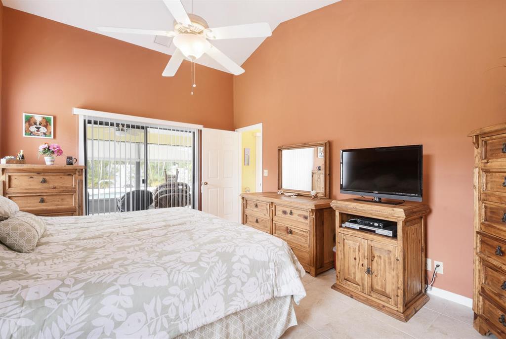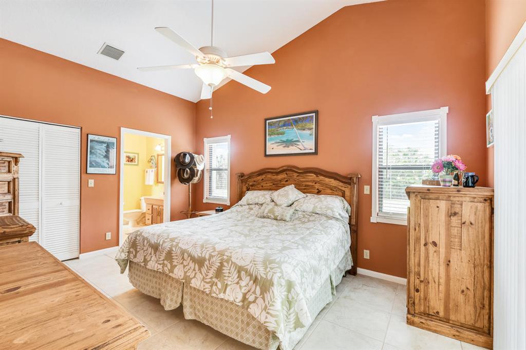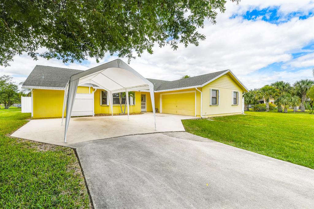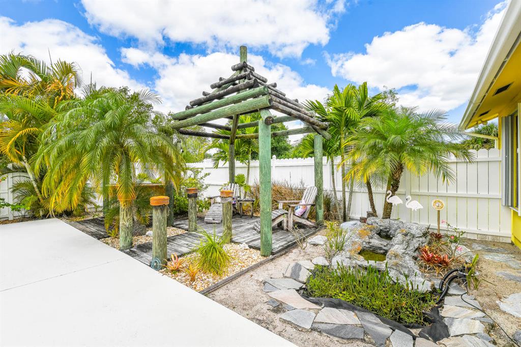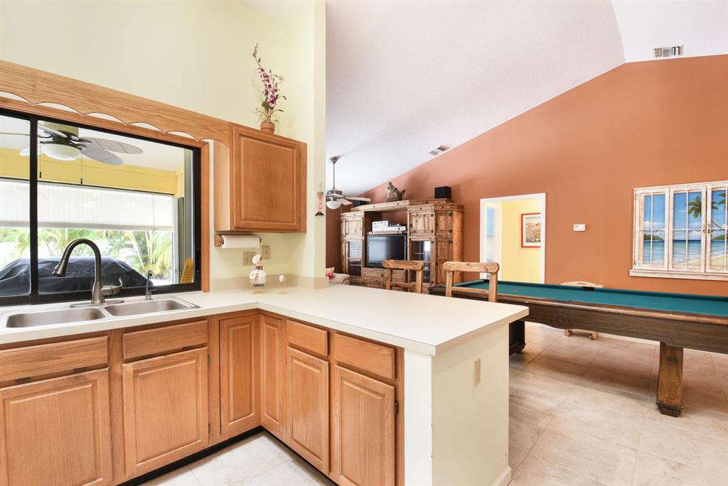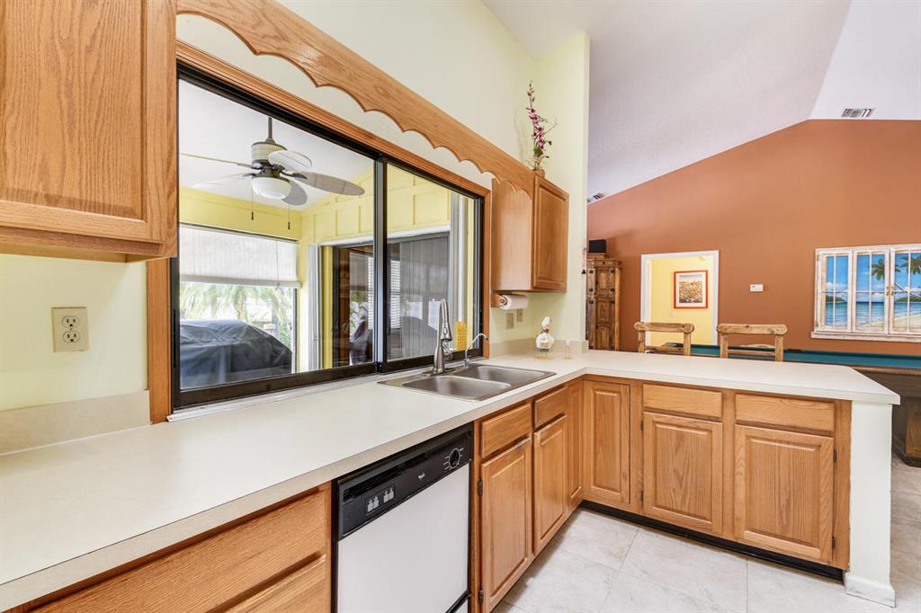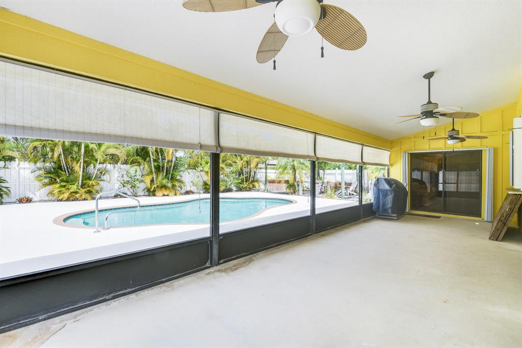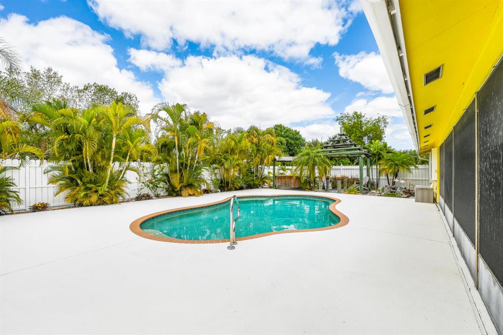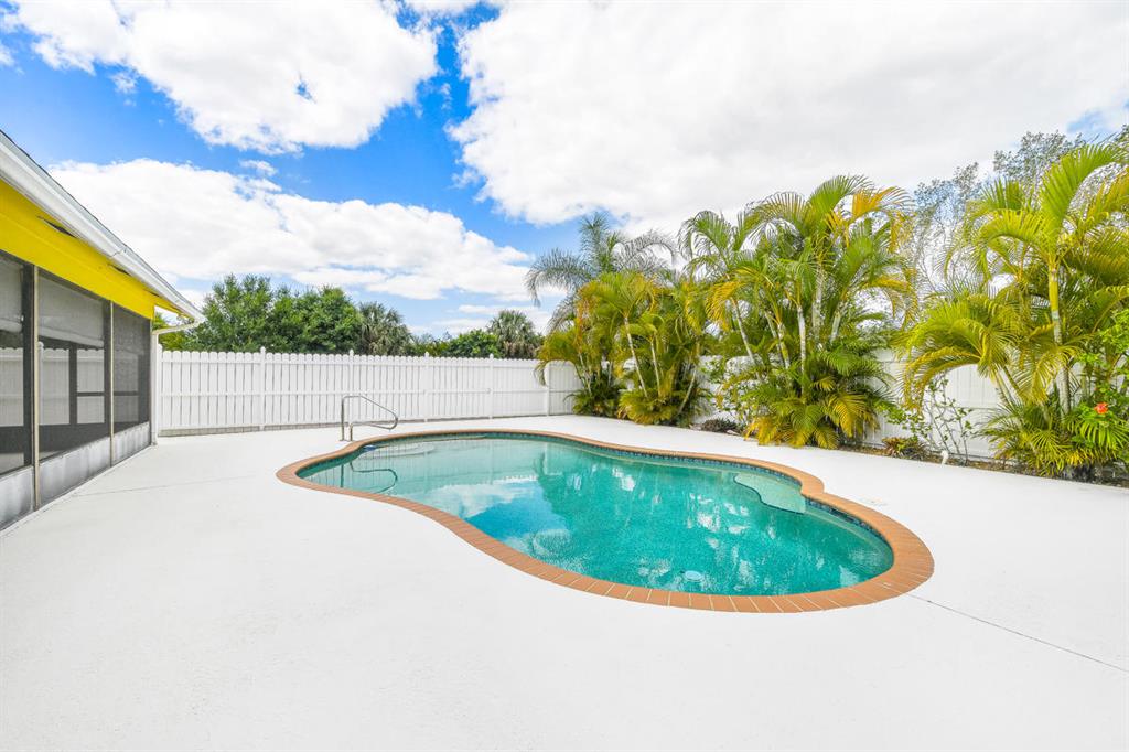 Summer time fun begins here for your family or a large gathering of friends. Bring your bathing suits and towels. Escape the summer heat and enjoy afternoons relaxing with private swimming pool and tiki bar...for those cold refreshments. Hugh roofed screened patio abuts pool. Pride of ownership shows. Recently painted with newer remodeled features in most areas. Large 16'' tile flooring, vaulted ceiling in main living area with soft colorful walls as a drop back accent. Large family room accommodates regulation pool table (for sale). Home has hurricane protection shutters. Exterior of home has ''hardi plank'' finish. Property uses septic system, city water. All sizes approximate. HOA voluntary/$40 per year. Furniture for sale separate. Sq. footage from house plans.