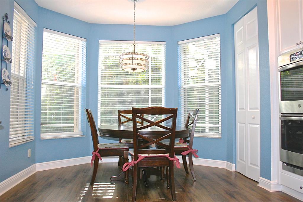 You'll love this stunning impeccably kept 1-story home located in Saturnia just across the street from Sunrise Park Elementary and Eagles Landing Middle School, both A-rated schools. Saturnia brings together the epitome of luxury living and one of the most sought after addresses in South Florida. Your spectacular home features hardwood floors in all the bedrooms, tile in the bathrooms and engineered indestructible wood style planking throughout the rest of the home. Three way split open floor plan with your own very private warm and inviting master suite is designed for the Florida lifestyle. Entertain friends or the family in your updated gourmet eat-in kitchen with bay windows overlooking your lush private backyard. Spacious closets and ample storage will easily tackle any storage needs