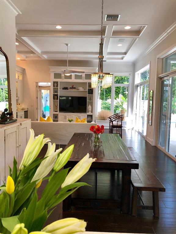 THE ULTIMATE LIVING EXPERIENCE. Elegant seaside home, half a block to a private, gated and deeded beach access. This magnificent home designed by Randy Stofft features many custom architectural details exuding the feeling of a tropical paradise. This stunning 4 bedroom, 4 bathroom with den coastal home offers an expansive Chefs kitchen with Italian Calicatta countertops and custom ceiling height cabinetry and millwork throughout. Soaring 12 foot ceilings on main level invite bright natural light into the open floorpan leading out to a salt chlorinated pool and outdoor kitchen with Travertine patio and private landscaped yard with room for entertaining. Large master bedroom suite with terrace, walk-in closets featuring custom cabinets. Master bath with oversized shower and Roman tub.