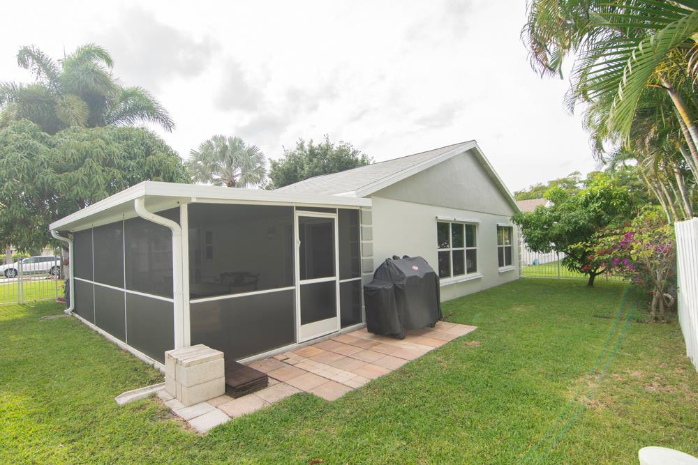 Wonderful 3 bedroom, 2 bath home in gated community of Palm Club, just minutes from downtown West Palm Beach, fine shopping & dining and Palm Beach International Airport! Entering from a screened front porch, you will come inside to enjoy vaulted ceilings and spacious living room and bedrooms in a well-maintained home. This home features hurricane impact windows with shutters plus a reinforced garage door. Enlarged covered back patio is the highlight of a fenced in yard (a rare find in Palm Club!). All appliances purchased within the last 3 years. Palm Club is a quiet neighborhood with a 24 hour manned gate! All room sizes approximate.
