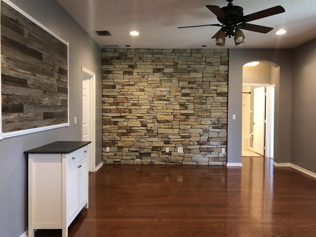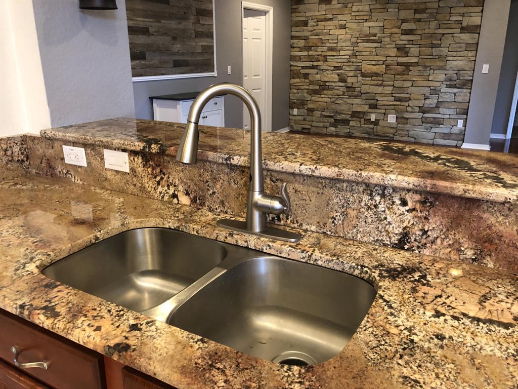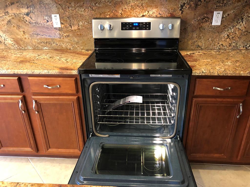 LARGE FENCED YARD! This one-owner Flintmore model includes custom features not found in any other home within the community. A decorative stone wall accentuates the living area with a clear view from the large, open kitchen. The spacious eat-in kitchen, which has views of the yard, has a NEW stainless steel Whirlpool range and refrigerator. The kitchen has an island for convenient prep, and there is a walk-in pantry. The kitchen sink has a Moen hands-free faucet. An air conditioned sunroom provides an additional living area that can be used for relaxation, or a game room.