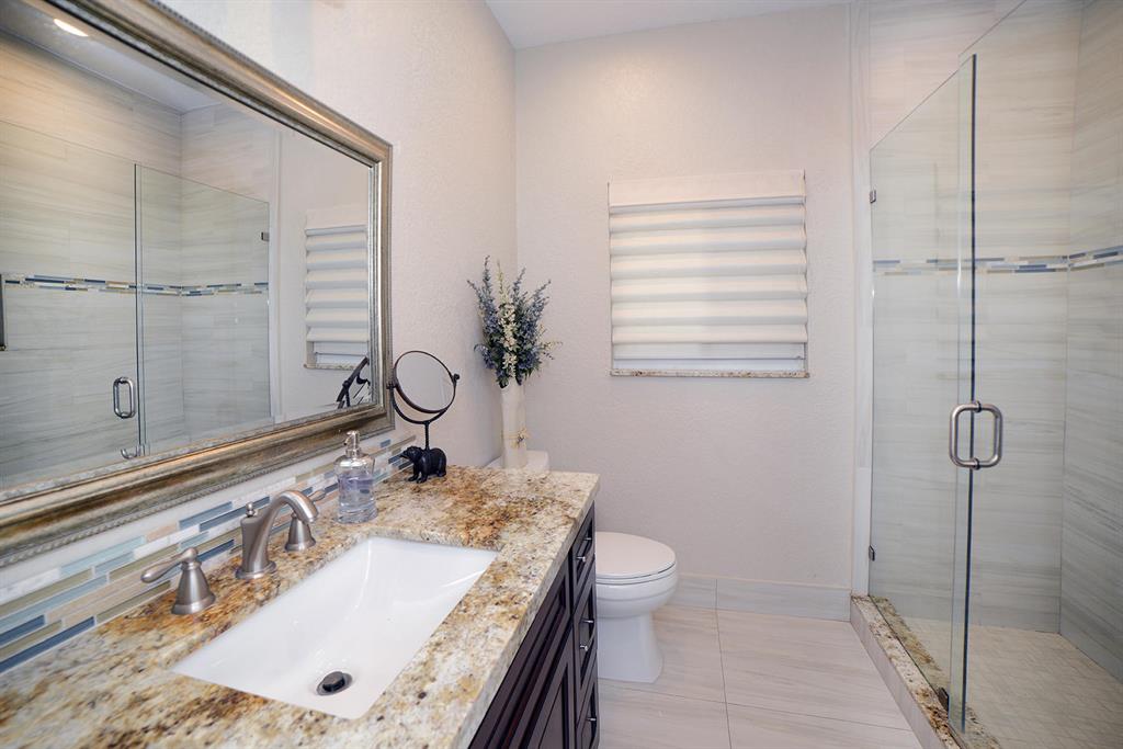 You'll love this home! Highly desirable 4 bedroom with master suite downstairs, 3.5 bath with large loft and a office media room! Volume ceilings and open floor plan make this home perfect for entertaining! Totally Renovated with travertine marble and wood floors, updated kitchen, new Stainless steel appliances, granite counter tops, newer refrigerator and Bosch dishwasher. Beautiful new bathrooms with all wood cabinetry and quartz countertops. New laundry room cabinets with newer washer/dryer. One of the largest private lots in the subdivision with a large backyard and inviting pool (new pool pump) and patio perfect for entertaining. This home has been completely renovated, immaculately maintained and ready for new owners. This home is exquisitely maintained.