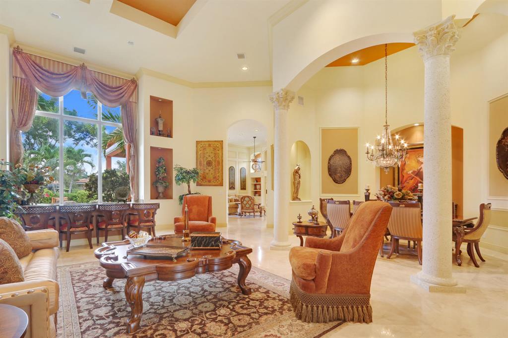 Here is a million dollar 4BR/4 1/2 BA+Study home without a million $$$$ price tag.Gently lived in 2 weeks a year-Impact Glass,3 yr old AC's, salt water pool,marble floors(no step), sit down bar, exquisite light fixtures and fans, crown and picture frame moldings,phantom screens, extra garage fridge,circular drive enhanced with lush landscaping,wrought iron door, upgraded carriage lights and so much more. With a NE exp in back, there is plentiful light all day yet no afternoon glare inside. Oversized pool,spa,patio area,summer kitchen aqua link, phantom screens add to the ambience of this home.Master suite has closet built ins, elec blinds, whirlpool tub, bidet , plus custom cabinets.Kitchen is a cooks dream-double ovens,pullouts, granite island, warming drawer -all looking at pool& patio.