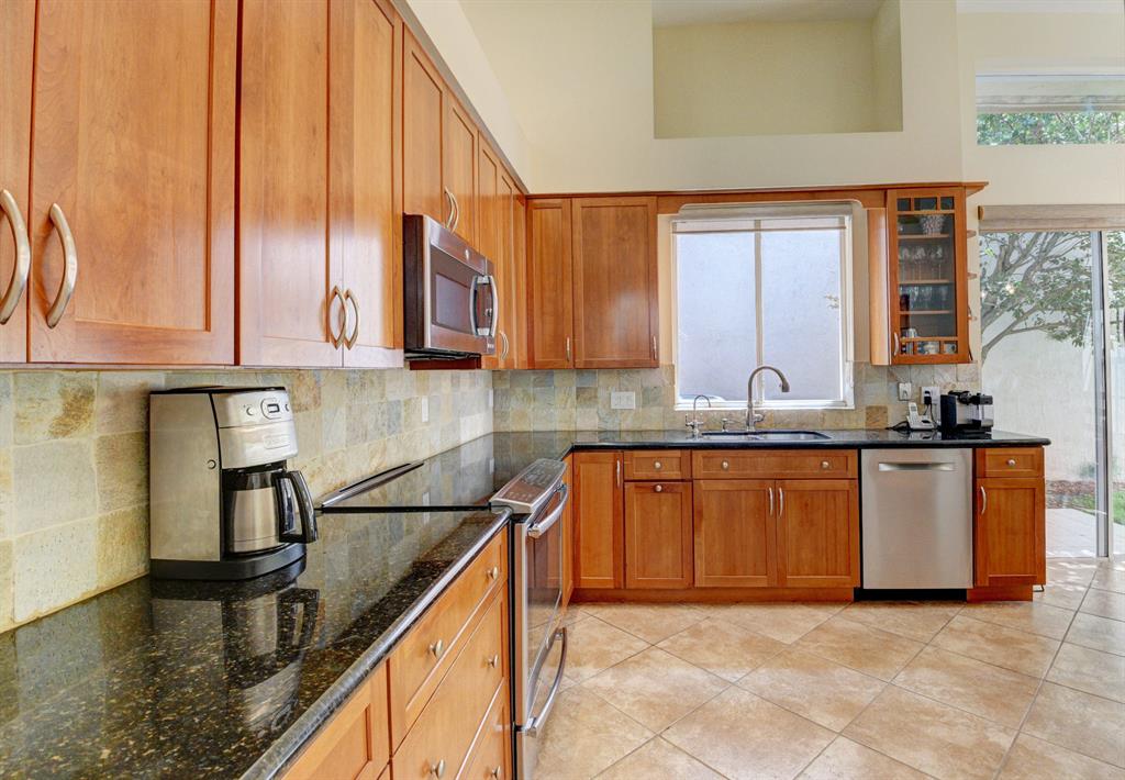 In the non equity gated community of Santa Barbara, you will find this magnificent 3 bedroom, 2 1/2 bath home where charm abounds and no detail overlooked. Featuring: crown molding, solid core doors, , outfitted closets, rough hewn wood floors, roof replaced 2015, new AC and W/H Dec '18, French doors, LED lighting throughout, like out of the pages of Architectural Digest. Formal foyer entry, volume ceiling in the living and dining area. Gourmet kitchen with ss appliances, granite counters, adjacent morning area a chef's delight. Ascend the staircase to second level living, two guest bedrooms, guest bath. Grand master suite and lavish master bath with separate shower, European tub and dual sinks down. Laundry room, 2 bay garage and open patio, complete this exquisite home.