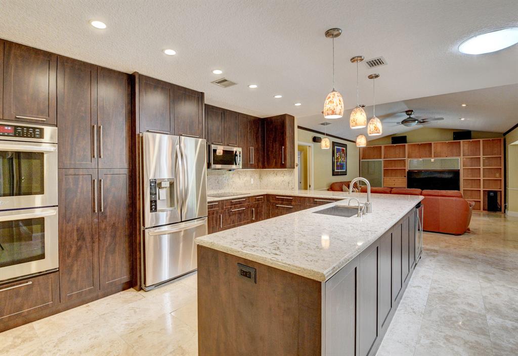 Lushly landscaped, large 5 bedroom pool home located on private cul-de-sac lot. Circular driveway. Newer kitchen with wood cabinets, quartz counter tops, SS appliances, breakfast bar, pull outs, wine cooler and dining area. Split bedroom plan. 3 A/C units. Marble floors throughout living areas. Carpet & Laminate wood floors in bedrooms. Spacious covered patio and domed screen pool are great for entertaining. Family Room, dining room,living room & master suite are all open to the pool/patio area. Best ''A'' rated schools. Close to major thoroughfares, shopping, restaurants and houses of worship. Steps from the Estancia Park. Low HOA fee, hurricane protection for windows. Huge laundry room suitable for additional storage, butlers pantry, craft room, etc. See suppl for more info