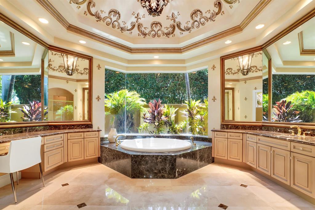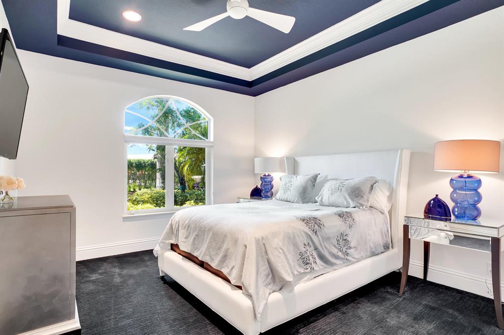 No expense was spared in this completely contemporized estate!Just move right into this breathtaking contemporary TURNKEY masterpiece in the highly coveted Eagle's Isle neighborhood of Ibis. This gorgeous cul-de-sac estate home has recently been featured in Boca Magazine. Designed by Patti Wood of Clive Daniel Home, this glamorous 4BR/5.5BA+Library+Exercise Room +3.5 garage is a showplace! Architecturally spectacular with soaring ceilings and oversized rooms throughout, great attention to quality was spent contemporizing and ''de-Tuscanizing'' this estate. Fabulous water and golf vistas and an over-sized pie-shaped lot provide the perfect setting. 24''x24'' marble flooring with inlays, handsome wood floors in the den, luxurious new carpeting, designer light fixtures and window treatme