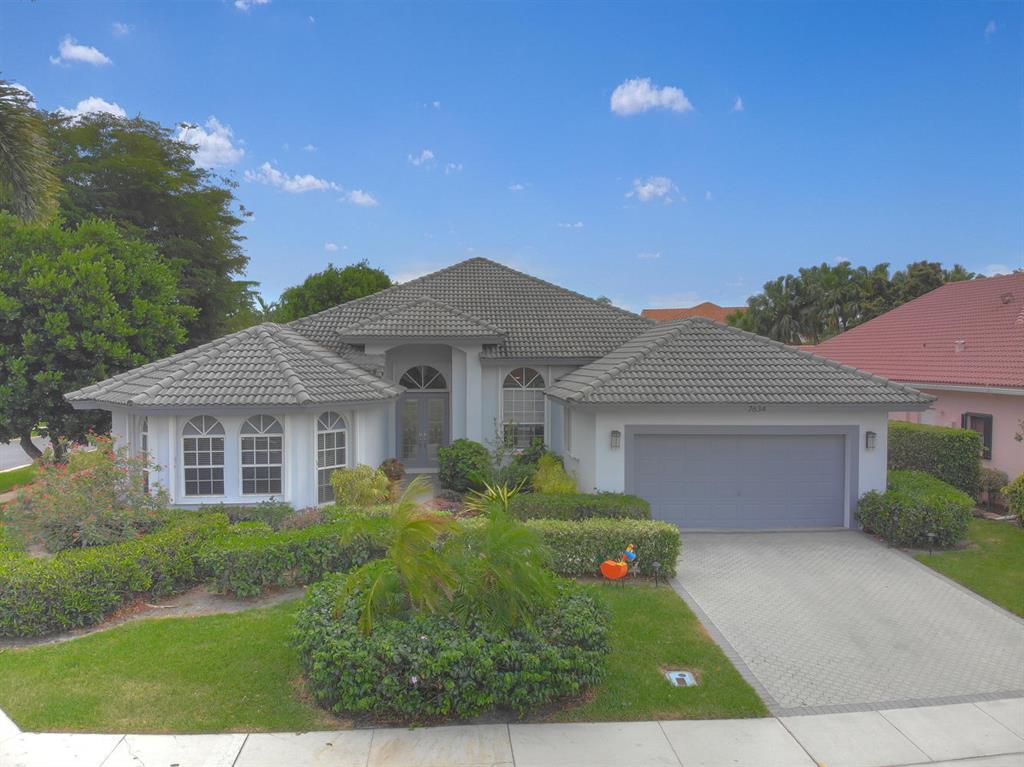 There's nothing like a sleek modern home that boasts clean lines and expansive windows. HARD TO FIND IN LA CORNICHE! This home is all on ONE LEVEL with NO STEP DOWNS !! NO POWER LINES! Step through the new decorator hurricane impact double front doors into 1,000+ sq ft of clean, bright, open living space! Volume ceilings and abundance of light, great for your treasured Art work and lots of parties! Newly renovated Kitchen with modern Ultracraft cabinetry, quartz countertops and matching LG appliances. Double sinks, double ovens, pots/pans drawers, low noise dishwasher and large pantry with roll outs. Master bath is a SPA-LIKE DREAM! Luxuriously appointed with stand-alone soaking tub, floating vanities and huge frameless barn-door glass shower. Pool has been newly refurbished. See More...