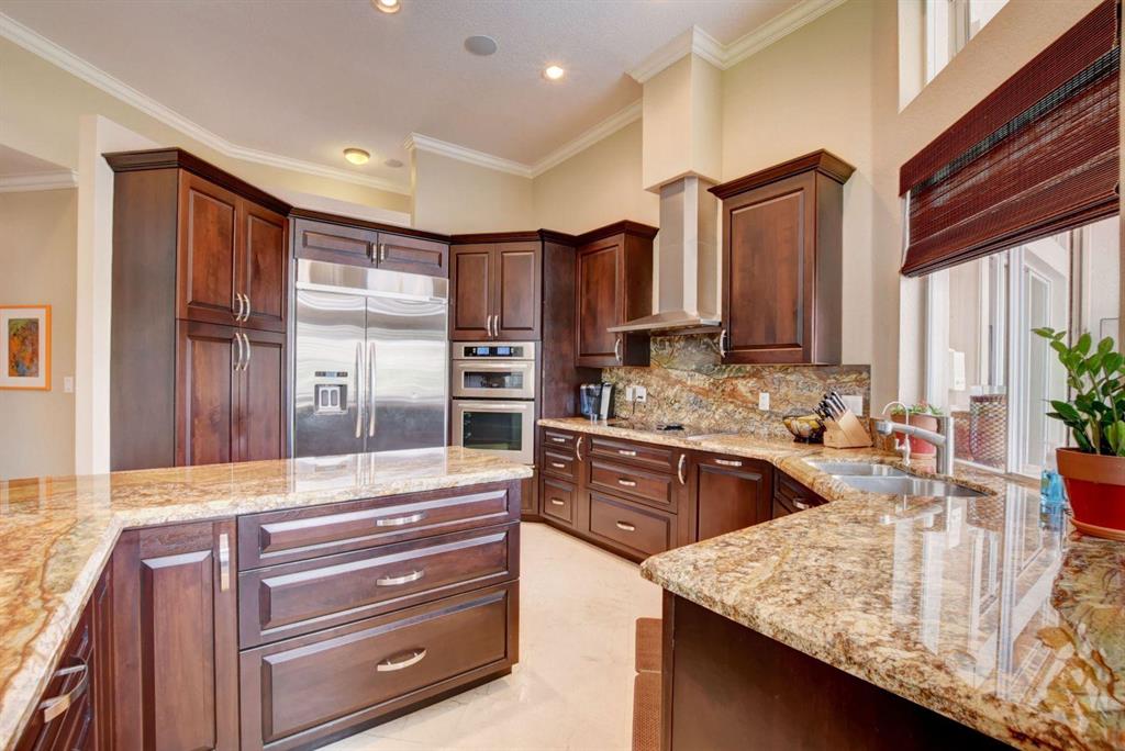 NO NEED TO BUY NEW! THIS IS THE HOME YOU'VE BEEN LOOKING FOR. RECONFIGURED AND UPDATED 1-STORY 6/3.1+3CG ON 1/3 ACRE, LAKEFRONT, CUL-DE-SAC LOT. KITCHEN RE-SITUATED AND OPENED UP, COMPLETE WITH HI-END KITCHENAID APPLIANCES INCLUDING RANGE HOOD, 30 CUBIC FOOT REFRIGERATOR, 5 BURNER GLASS TOP STOVE, & DOUBLE OVEN, SOFT CLOSE DRAWERS, BAR AND BUFFET TABLE, 24 INCH SATURNIA MARBLE TILE THROUGHOUT LIVING AREAS, ENGINEERED WOOD IN BEDROOMS, BEAUTIFULLY LINED RUSTIC TILE WALL IN FAMILY ROOM WITH MODERN BUILTIN CABINET, WOOD ACCENTED WALL IN DINING AREA CREATES A WARM OPEN DINING EXPERIENCE, TUSCAN-LIKE COLUMNS REMOVED, OFFICE OFF KITCHEN HAS GLASS FRENCH DOORS AND RUSTIC/MODERN LAMINATE FLOORING, KIDS PLAY AREA OR MANCAVE IN SEPARATE WING OF HOME,