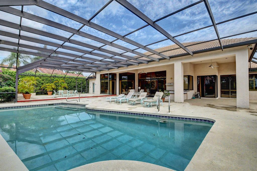 Situated on a golf view lot in Boca's highly desirable gated Bocaire Country Club. This bright airy home boasts over 3800 sf of living space. Soaring volume ceilings, walls of windows. An entertainers delight with a formal dining room donned with stylish lighting, wet bar, walls of windows, custom built-ins, large eat -in ktichen with abundance of cabinets, island , pantry, sunny skylight. Graciously proportioned bedrooms including a luxurious master bedroom, cabana bath opening to a resort style screened pool overlooking the golf course. Bocaire is an exclusive boutique country club lifestyle with resort style amenities. Renowned brand new championship golf course with no tee times. Active golf and tennis programs, state of the art fitness center and stunning aquatics center including a