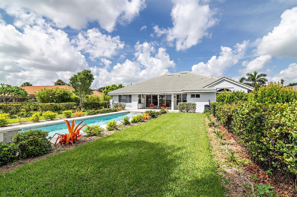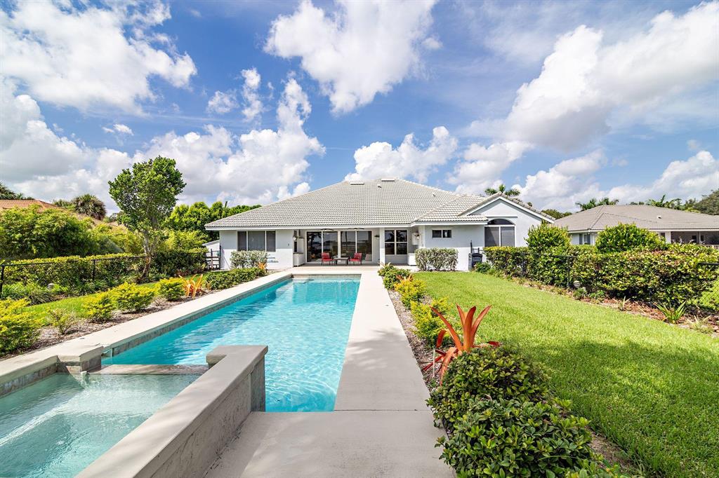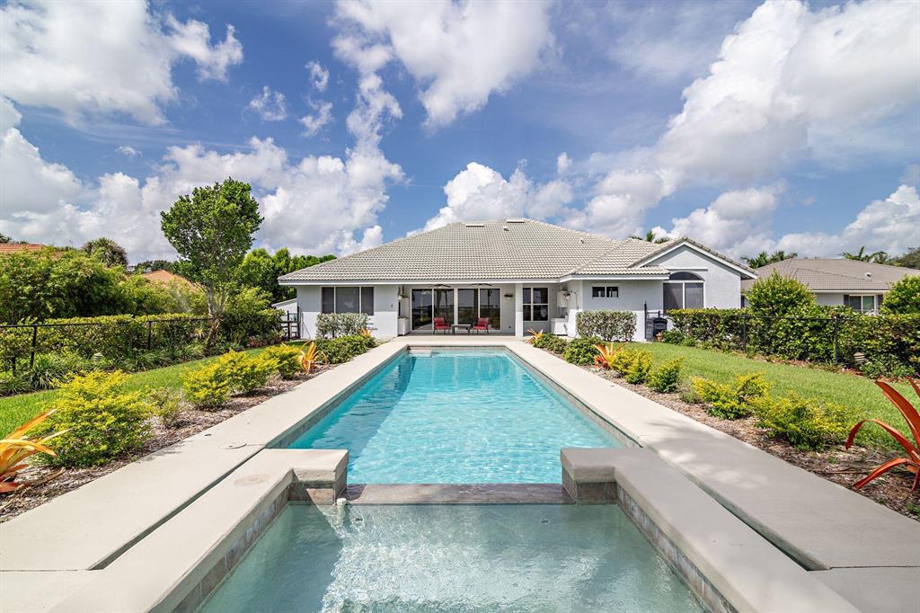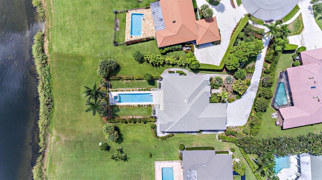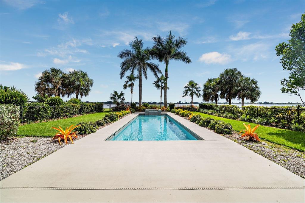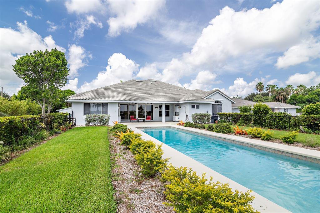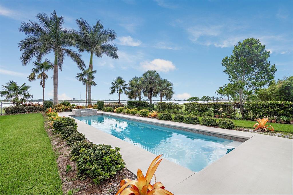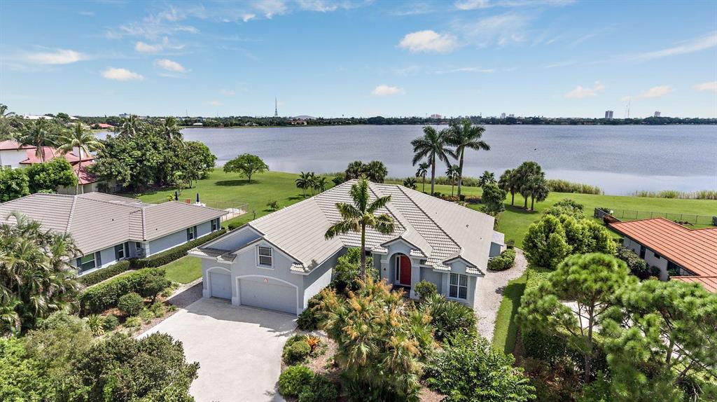 Stunning 5 bedroom/4 bath home situated on a large direct waterfront lot in a cul-de-sac for added privacy. Incredible outdoor space with custom heated lap pool and jacuzzi, covered patio and expansive fenced backyard with gorgeous water views. Additional features include 3 car garage, den/office, large master suite, and updated A/C units. Centrally located only minutes away from I-95, downtown West Palm Beach, The Outlets, PBI Airport, and Banyan Cay Golf Club.