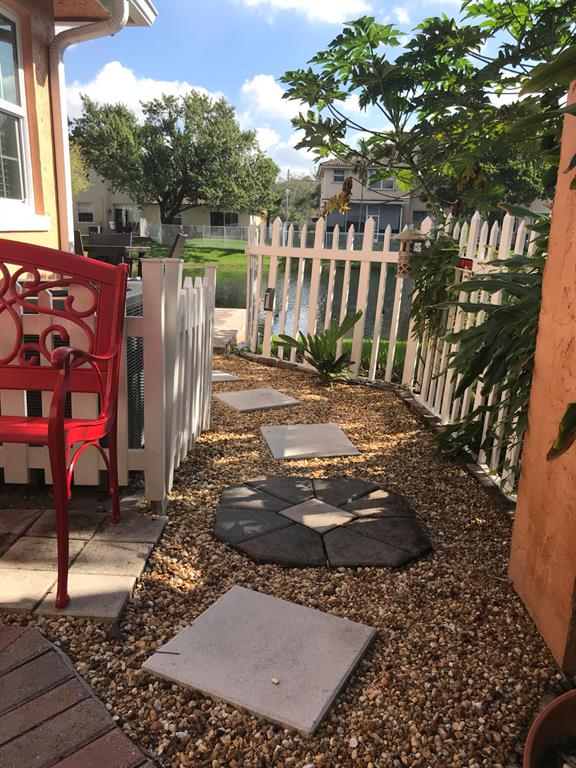 Gorgeous, completely remodeled, 3/2 villa in quiet gated community. Tranquil lake view with new paver deck in back, great for relaxing & entertaining. Complete hurricane windows with 24 x 12 Italian tile throughout. Stainless-steel appliances, granite counter tops & glass-tile back splash in kitchen. Master bath has extra-deep bath tub/frameless glass shower & floating dual vanities. Guest bathroom has frame less walk in shower with pebble floor. Brand new washer/dryer. Other features include: Built-in cabinets with custom stone wall & added rain gutters. Villa is located between two parks, close to shopping, restaurants & major highways. Community has 2 lakes, 2 pools, security cameras & new playground. Low HOA fees include home alarm system. A must see immaculate property!