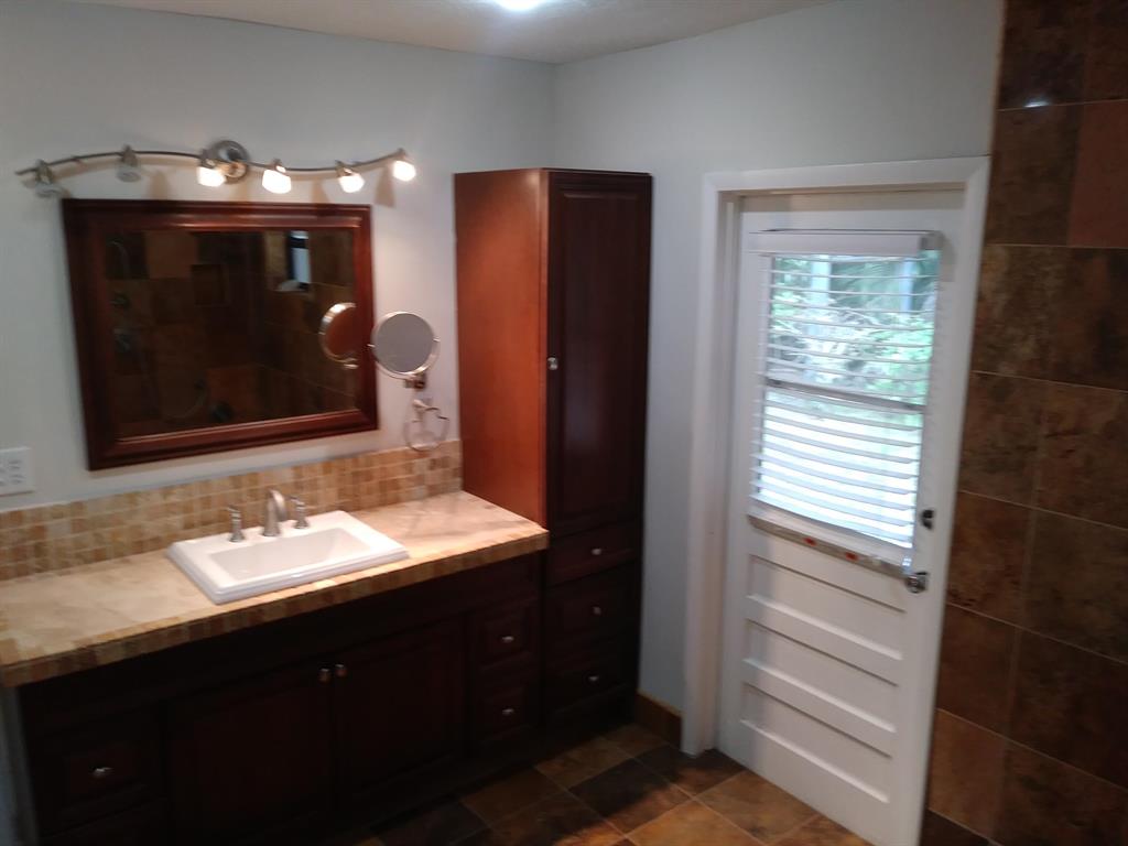 Location, location, location. Only $125 a month HOA in a Beautiful Gated Community of Single Family Homes w/Shady Tree-Lined Streets & Park on Interior Lake...Close to the Florida Turnpike, I-95, Restaurants and Shopping. This stunning home is a single story with circular driveway, big front porch, Double Glass and iron front doors, beautiful glossy Rectified Porcelain Flooring and 16 Ft Wood Planked Vaulted Ceiling. Updated kitchen and bathrooms, huge updated master shower, sliding doors everywhere and beautiful Travertine pavers on the back patio, all this on a (80' X 105' approx) Beautifully Landscaped Lot. SPRINKLER IRRIGATION, WINE COOLER