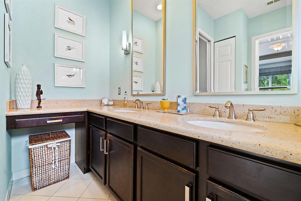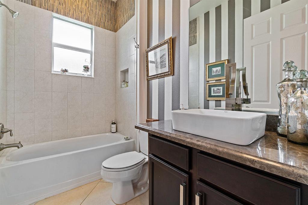 This fabulous home offers a bright & open split floor plan with 3 bedrooms, 2 bath, 2 car garage located in a desirable gated community with resort amenities. The elegant foyer entrance leads to living room with volume ceiling. This home includes unique upgrades: kitchen extended granite counter top, additional wall cabinet & wine cooler, counter depth fridge with side panel and easy to reach upper cabinet, pull out drawers, subway tile backsplash, panels around the kitchen isle, master bath with custom mirrors, guest bathroom modern vessel sink & faucet, extended paved patio. Beautiful private back yard with extended view, perfect for family & friends gatherings and plenty of space to add pool. Complete with Hi Hats lighting, Laundry Room w/extra cabinets & utility sink, large pantry.