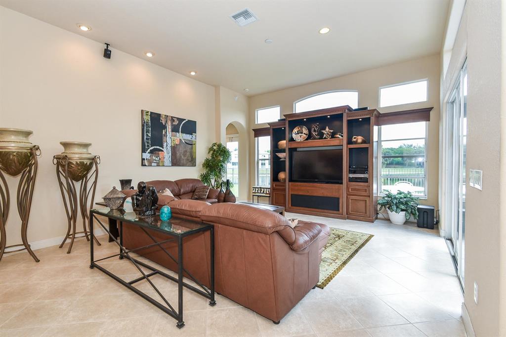 You can have it all!Beautiful 5Br/3Ba cul-de-sac on premier lake lot with circular driveway. Enter this gorgeous home w/3 car garage and you will take in the ambiance of the grand ceilings, marble tiled floors and expansive lake views. This home includes a rich office with custom built-ins,custom gourmet kitchen w/42'' cherry wood cabinets, center cooks island, backsplash w/ marble inlays, breakfast area, family rm,formal dining rm, and living rm. Outside, pool w/ rock waterfall and separate hot tub spa. huge backyard perfect for entertaning. Saturnia is a 24hr manned gated community w/ a beautiful clubhouse, fitness center, tennis courts,indoor/outdoor play areas. Walk to A+ rated Sunrise Park Elementary and Eagles Landing Middle Schools