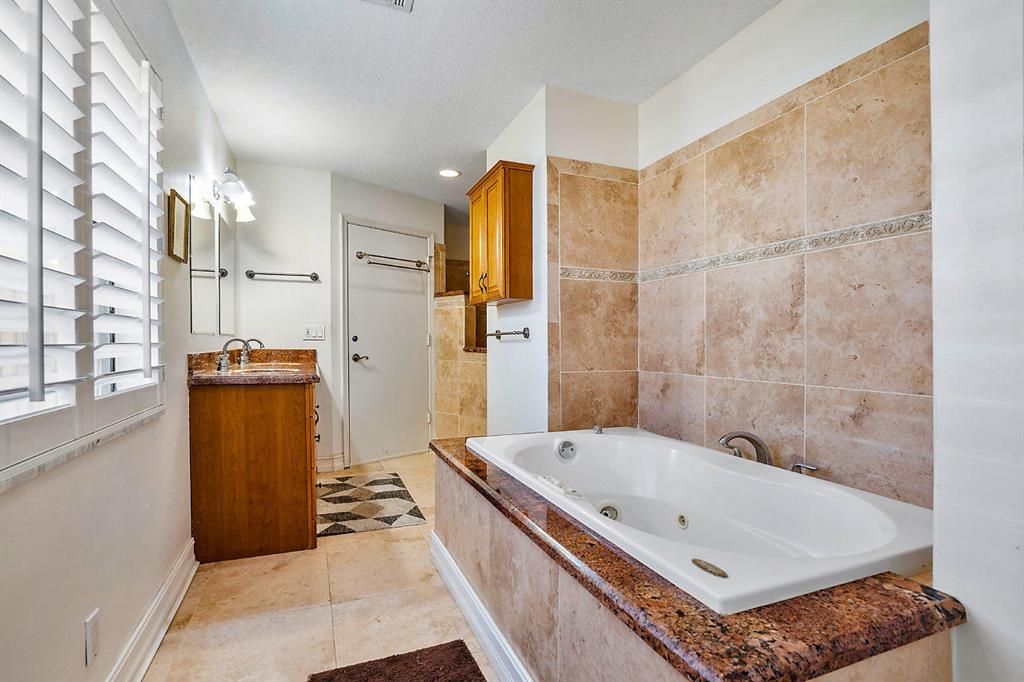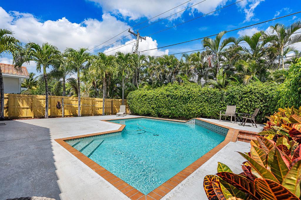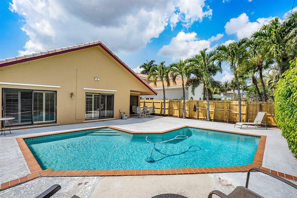 Perfect East Boca location in the highly sought after Palm Beach Farms Community. Lovely updated 3 Bedroom, 2 Bath Pool home. Features granite countertops, SS appliances, center island and wood grain cabinets. Vaulted ceilings, plantation shutters, crown molding, recessed lighting and knock down ceiling finish. Updated baths, master has spa tub, separate shower, dual sinks, travertine tile and walk in closet. Third bedroom has french doors currently used as an office. Wonderful private fenced yard overlooking the pool with greenery and Palm trees. Two car garage, recent driveway pavers, home built in 1987, Hurricane garage door, S tile roof replaced in 2005, Exterior recently painted. A+ schools, close to all Boca has to offer and just 3 miles to the beach!