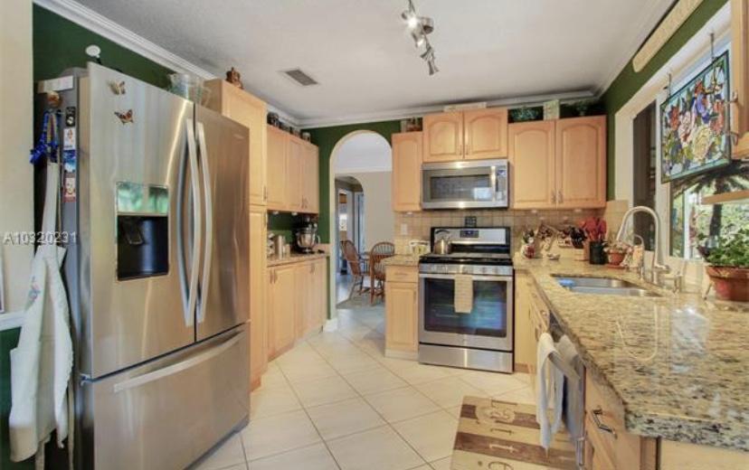 Picturesque 3 bedroom/2 bath/1 car garage home in Sunrise. This turnkey home is highlighted by a maintenance free salt water pool system and covered patio to enjoy the South Florida weather. The completely remodeled kitchen features gorgeous granite countertops, newer stainless steel appliances, a gas range and maple wood cabinets. This home has a desirable split bedroom floor plan with large tile laid on a diagonal throughout living areas as well as crown molding and textured walls. The mater suite awaits you with a jacuzzi tub and his and hers large walk in closets. Brand new washed and dryer and newer water heater. Hurricane impact windows and security system for your safety and security. Beautifully pavered circular driveway to accommodate all of your guests. Centrally located. No HOA!