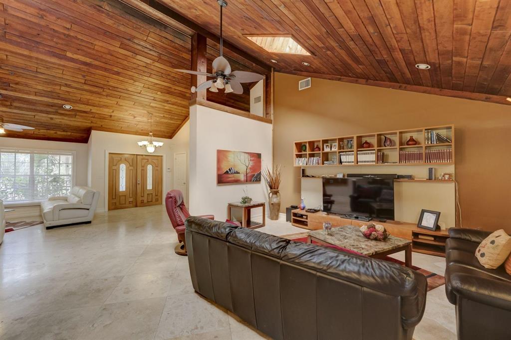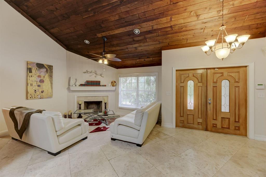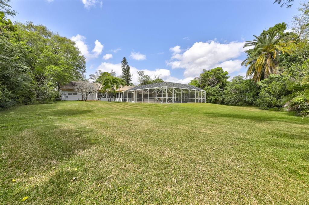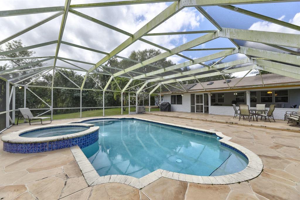 This Light and Bright Ranch-style home is situated on over an acre lot, surrounded by trees, and located in the very desirable neighborhood of Pine Tree Estates in Parkland, Florida. The open-spaced floor plan, big covered Patio, and huge screened and paved pool & spa area--are great for entertaining. You can walk through the Living Room equipped with a wood-burning fireplace, Family Room, Formal Dining Room, as well as a Breakfast Room, and eat-in-kitchen, all of which are under the cathedral ceiling with skylights. The Master Suite has a big sitting room. The kitchen is upgraded with a big island, granite countertops, and stainless steel appliances.