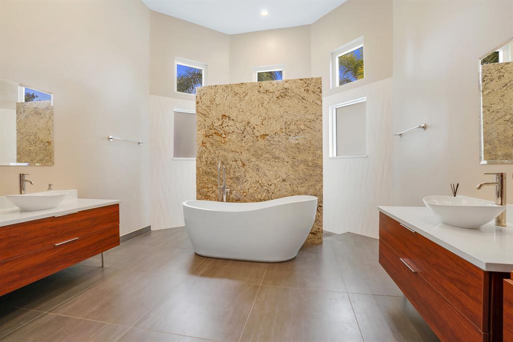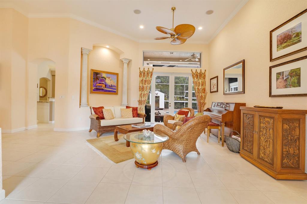 Beautifully maintained, updated Lenox model on interior lot w/newly diamond brited pool & peaceful, low maintenance backyard retreat. Contemporary kitchen has white glossy cabinets w/pullouts & lazy susan, center island, granite counters, grey tile backsplash, modern silver handles, spacious pantry, stainless steel appliances including Wolf cooktop, Bosch dishwasher, GE Profile double oven & dishwasher + a 2 zone wine cooler. Master Suite includes built-in ''modern Danish'' furniture, 2 walk-in closets, spa-like ''Zen'' bathroom w/dual vanities, quartz counters w/vessel sinks, separate soaking tub + walk-thru shower w/multiple sprays. Triple split plan for extra privacy. Stone look tile and laminate floors throughout. 2 zone AC + 2 water heaters. Crown molding in Living Room.