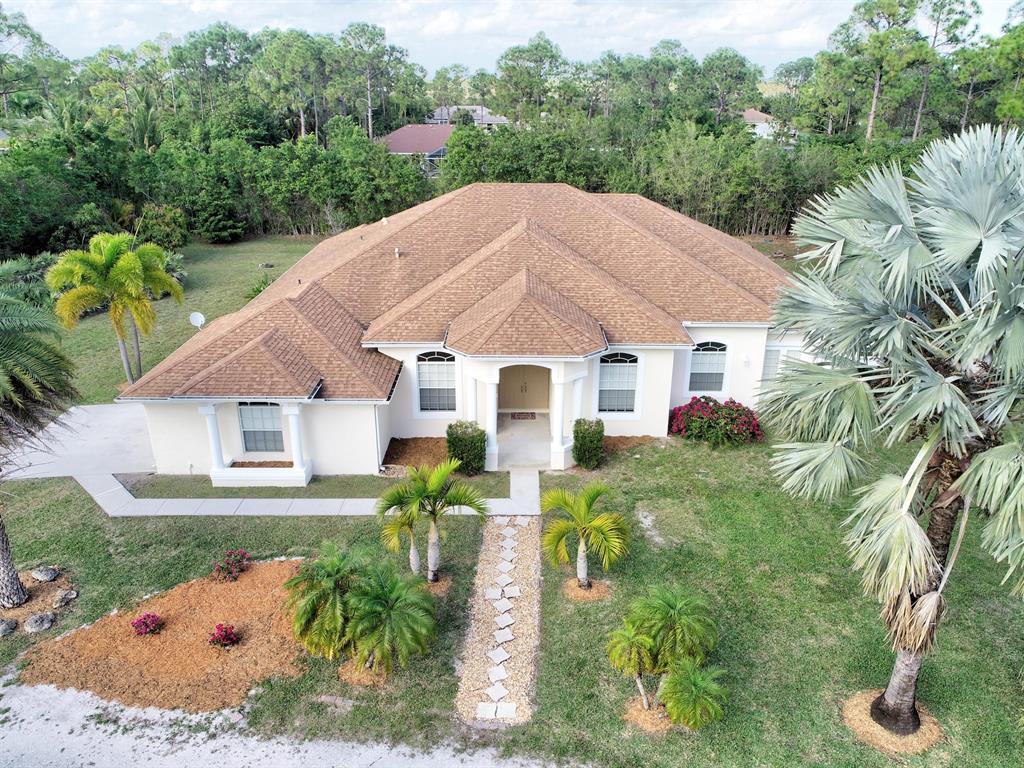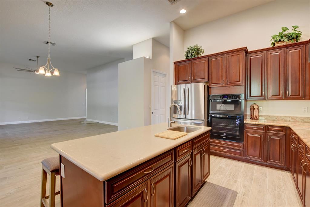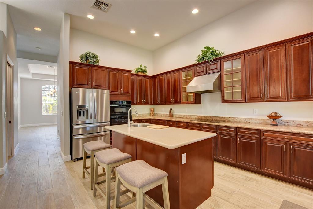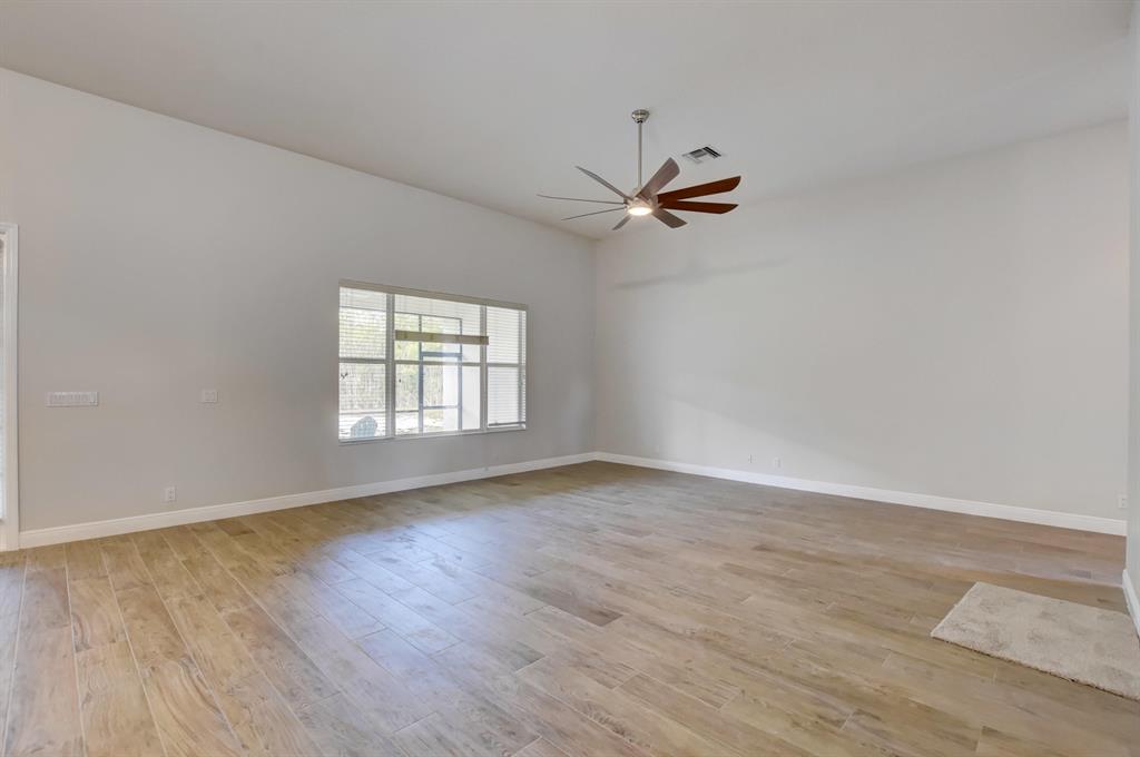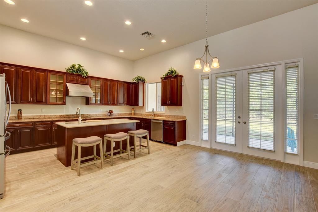 This great custom home is perfect for the family who needs more room w/ nearly 5000 total sf & 3800sf under air, a huge master suite, four large br's plus den/5th br. Wide open floorplan with soaring ceilings and enormous 700sf+ family room. French doors open to the park like yard from the family room and from the master bedroom sitting area. Deluxe kitchen w/ granite counters plus huge quartz island with prep sink and room for stools. New kitchen appliances including wall oven and cooktop, brand new porcelain plank look tile, large walk-in pantry, bedroom #2 is 2nd master suite and Br 3 & 4 share a jack and jill bath. Lg utility room w/ utility sink, 7 zone sprinkler system draws from the canal & has new pump and digital K bird controller, circular drive for plenty of parking & mor