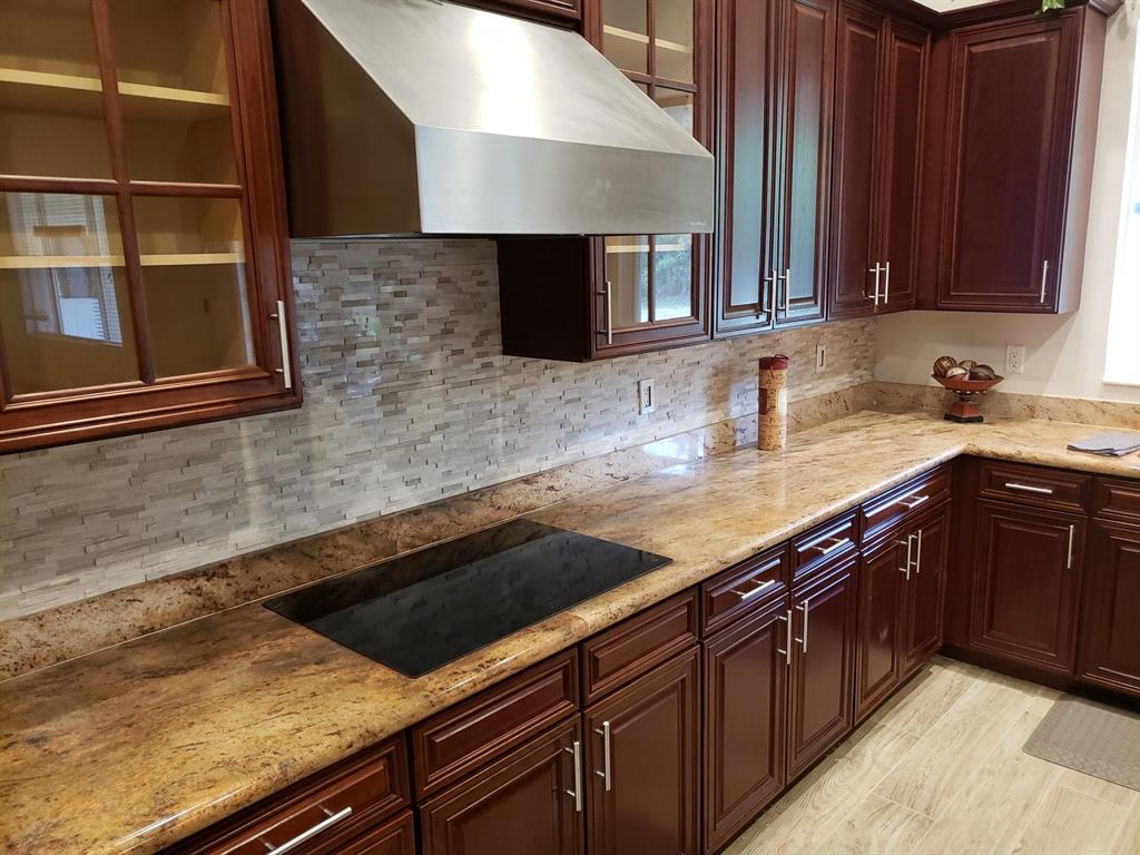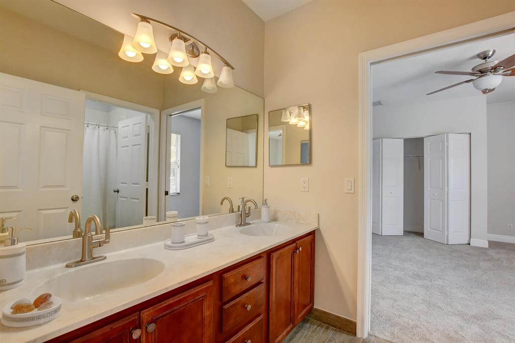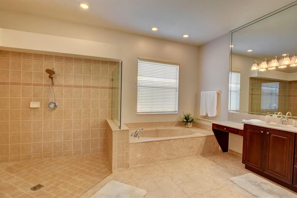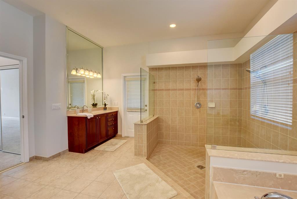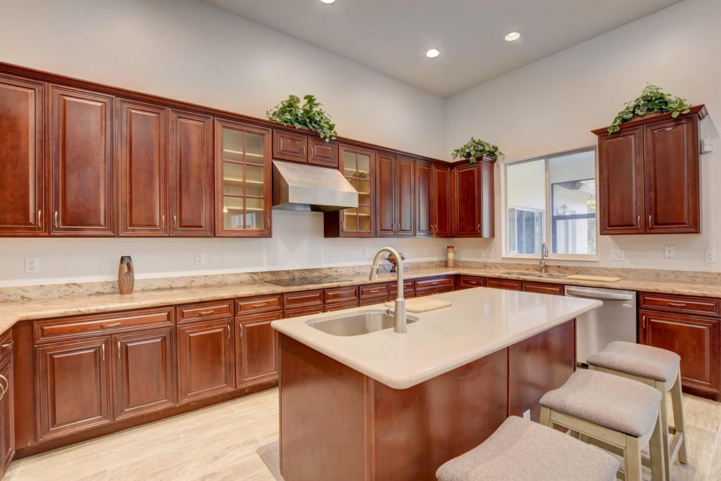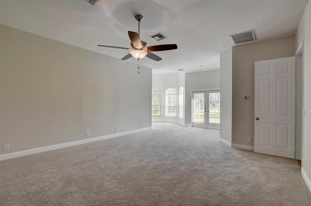 This great custom home is perfect for the family who needs more room w/ nearly 5000 total sf & 3800sf under air, a huge master suite, four large br's plus den/5th br. Wide open floorplan with soaring ceilings and enormous 700sf+ family room. French doors open to the park like yard from the family room and from the master bedroom sitting area. Deluxe kitchen w/ granite counters plus huge quartz island with prep sink and room for stools. New kitchen appliances including wall oven and cooktop, brand new porcelain plank look tile, large walk-in pantry, bedroom #2 is 2nd master suite and Br 3 & 4 share a jack and jill bath. Lg utility room w/ utility sink, 7 zone sprinkler system draws from the canal & has new pump and digital K bird controller, circular drive for plenty of parking & mor