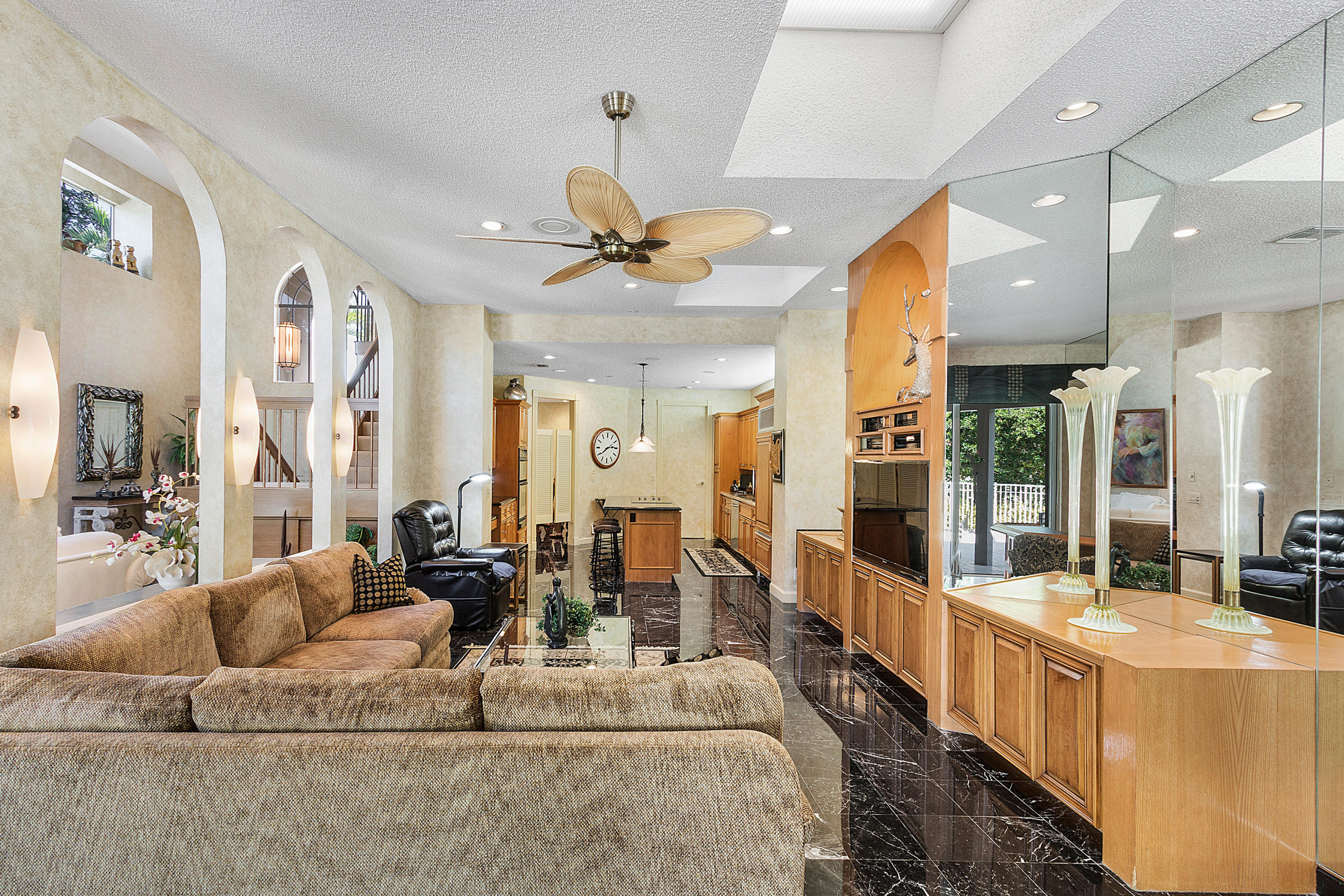 Opportunity awaits, as this home situated on an extra-large lot with expansive fairway golf course views. A dramatic two-story great room flows to the oversized sun-drenched patio and pool area. On the main level, you will find a grand master suite with large walk-in closets and a beautiful master bath. The upper level, consists of two bedrooms which are both spacious in size. Both of these bedrooms are en-suite with bathrooms. This home follows beautifully and is a must to see in person to realize its full potential. Located within a short walking distance to the award-winning Polo Club Country Club.
